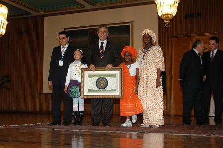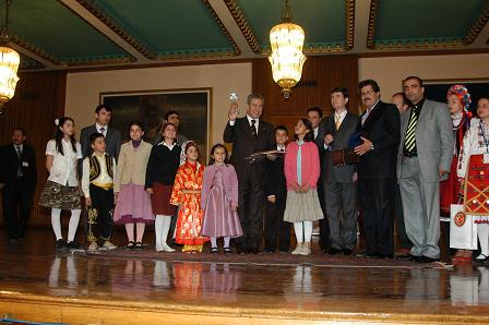 fotoğraf çektirdi. Dünya çocukları da Arınç'a, ülkelerini sembolize eden
