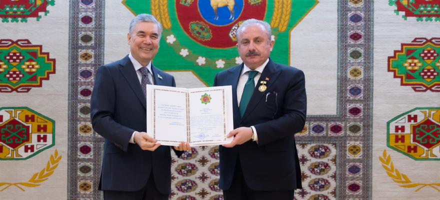 Türkiye Büyük Millet Meclisi (TBMM) Başkanı Mustafa Şentop?a Türkmenistan Ulusal Konseyi Halk Maslahatı Başkanı, eski Türkmenistan Cumhurbaşkanı Kurbankulu Berdimuhamedov tarafından "Devlet Nişanı" takdim edildi.
