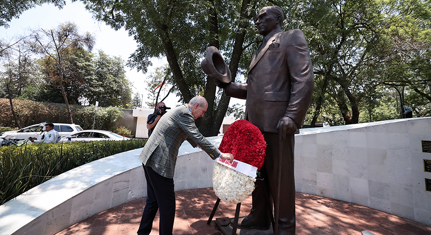 Meclis Başkanı Kurtulmuş, MIKTA 10. Parlamento Başkanları Toplantısı için geldiği başkent Meksiko'da, beraberindeki CHP Grup Başkanvekili Murat Emir, MHP Grup Başkanvekili Filiz Kılıç, Türkiye-Meksika Parlamentolar Arası Dostluk Grubu Başkanı ve AK Parti Kırklareli Milletvekili Ahmet Gökhan Sarıçam, AK Parti Konya Milletvekili Selman Özboyacı ve Türkiye'nin Meksika Büyükelçisi İlhan Kemal Tuğ ile La Reforma Bulvarı'ndaki Gazi Mustafa Kemal Atatürk'ün anıtına geldi.