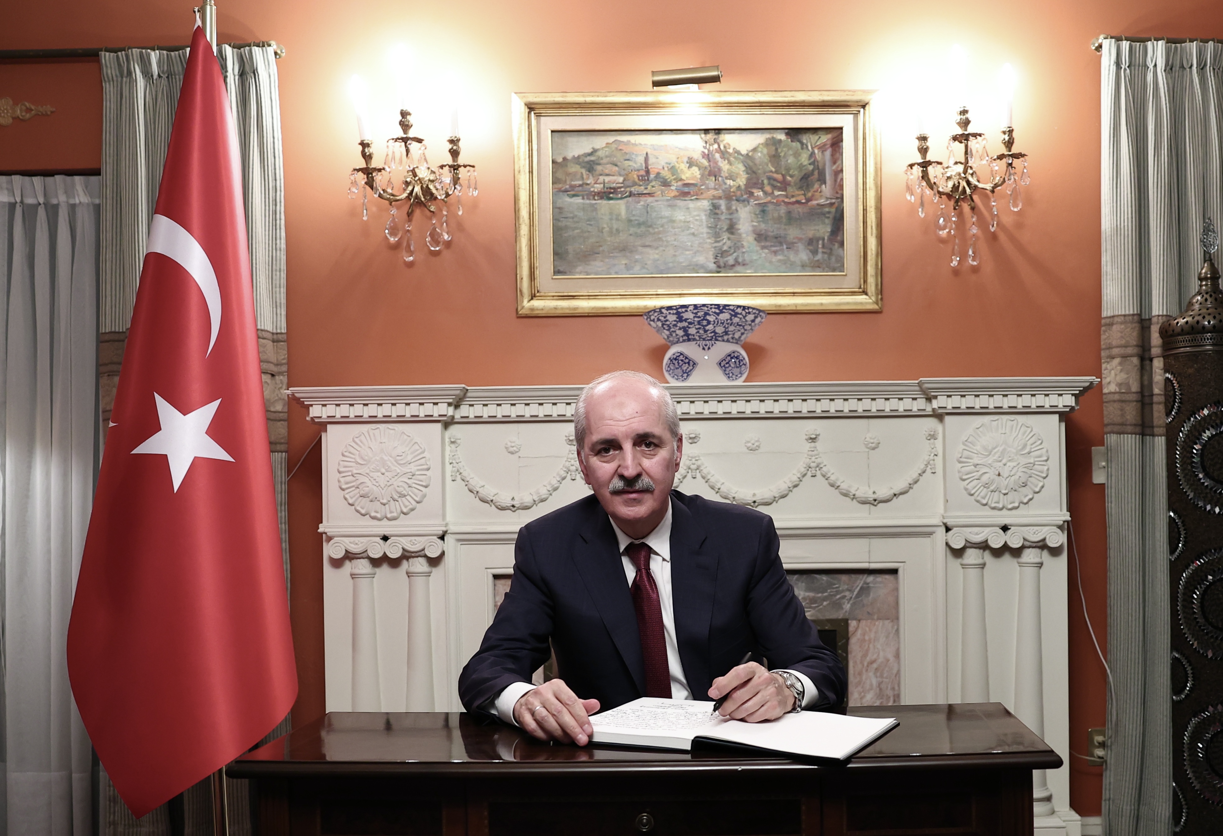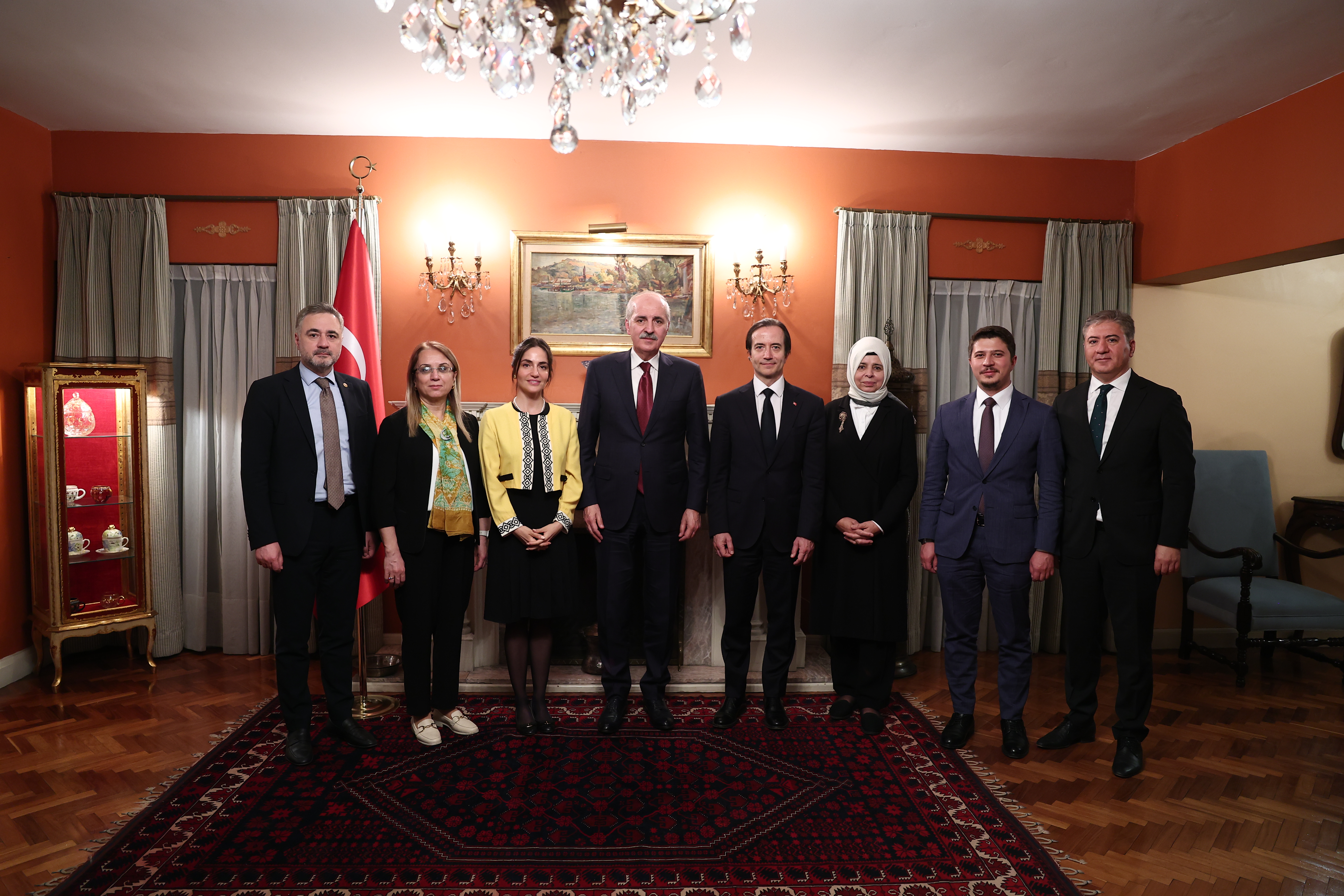 TBMM Başkanı Kurtulmuş, daha sonra hilal ve yıldızla çevrili Atatürk Anıtı önünde parlamento heyetiyle fotoğraf çektirdi.
