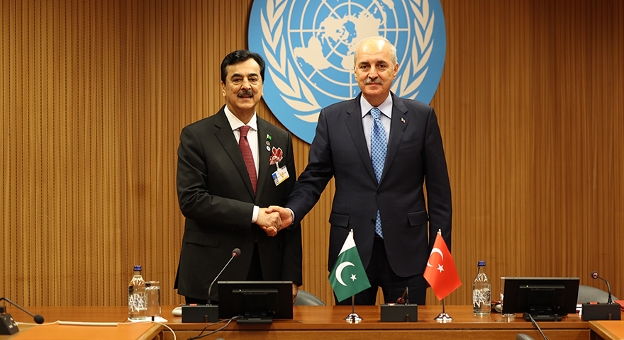 “Dost ve kardeş Pakistan’ın Senato Başkanı Syed Yusuf Raza Gilani ile Altıncı Dünya Parlamento Başkanları Konferansı marjında bir araya gelmekten mutluluk duydum.