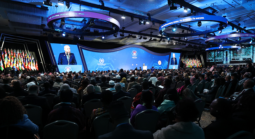 "Gelecek Nesiller İçin Umudu Yeşertmek, Barışı Güvence Altına Almak ve Adaleti Sağlamak" temasıyla düzenlenen 152. Genel Kurul'un başkanlığını TBMM Başkanı Numan Kurtulmuş yürütüyor.