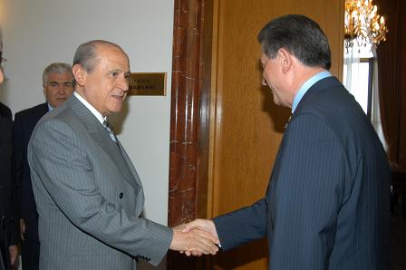 Bahçeli'ye bu ziyaret sırasında, MHP Grup Başkanvekili Oktay Vural ile MHP Genel Sekreteri Cihan Paçacı eşlik etti.