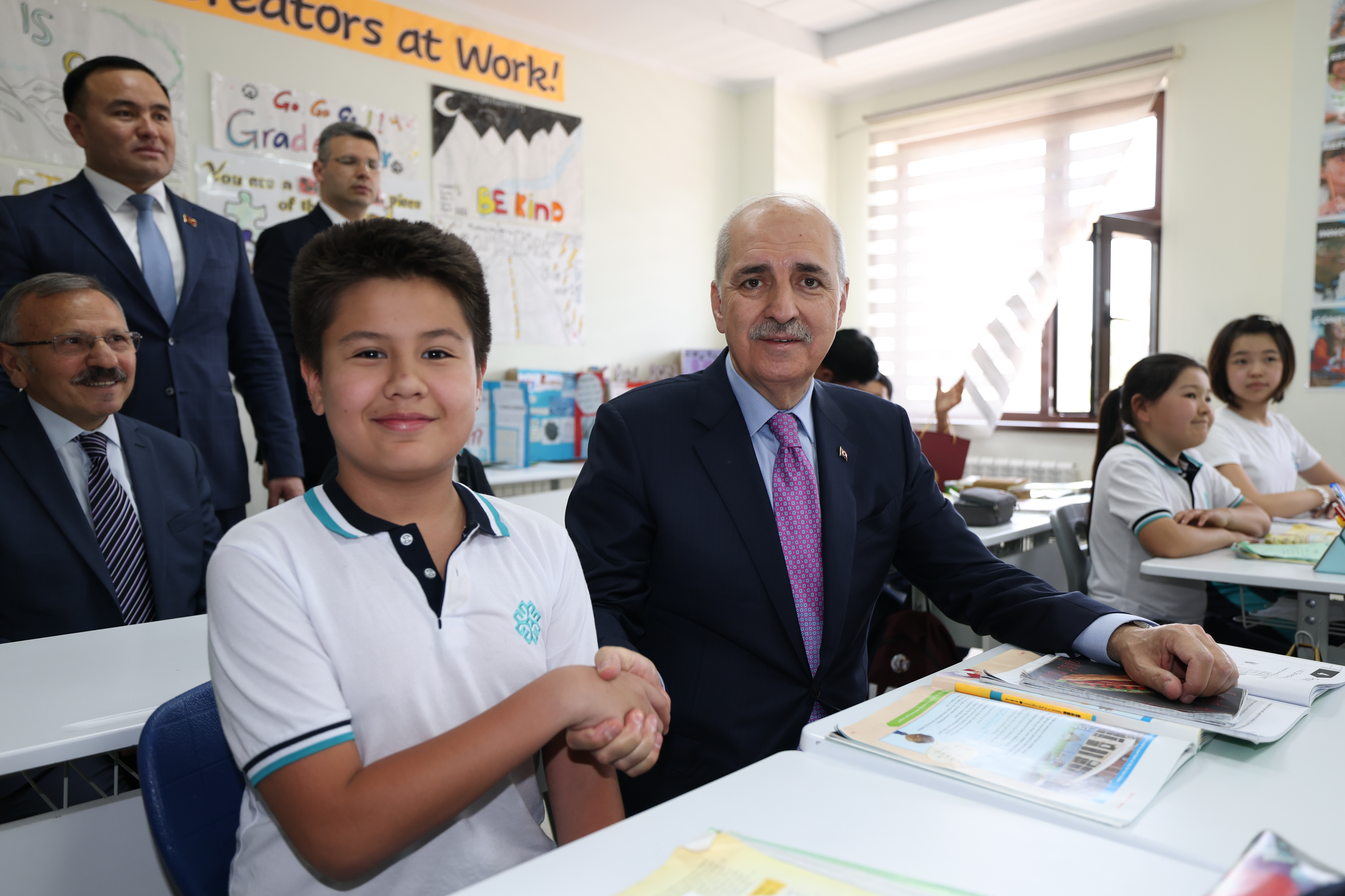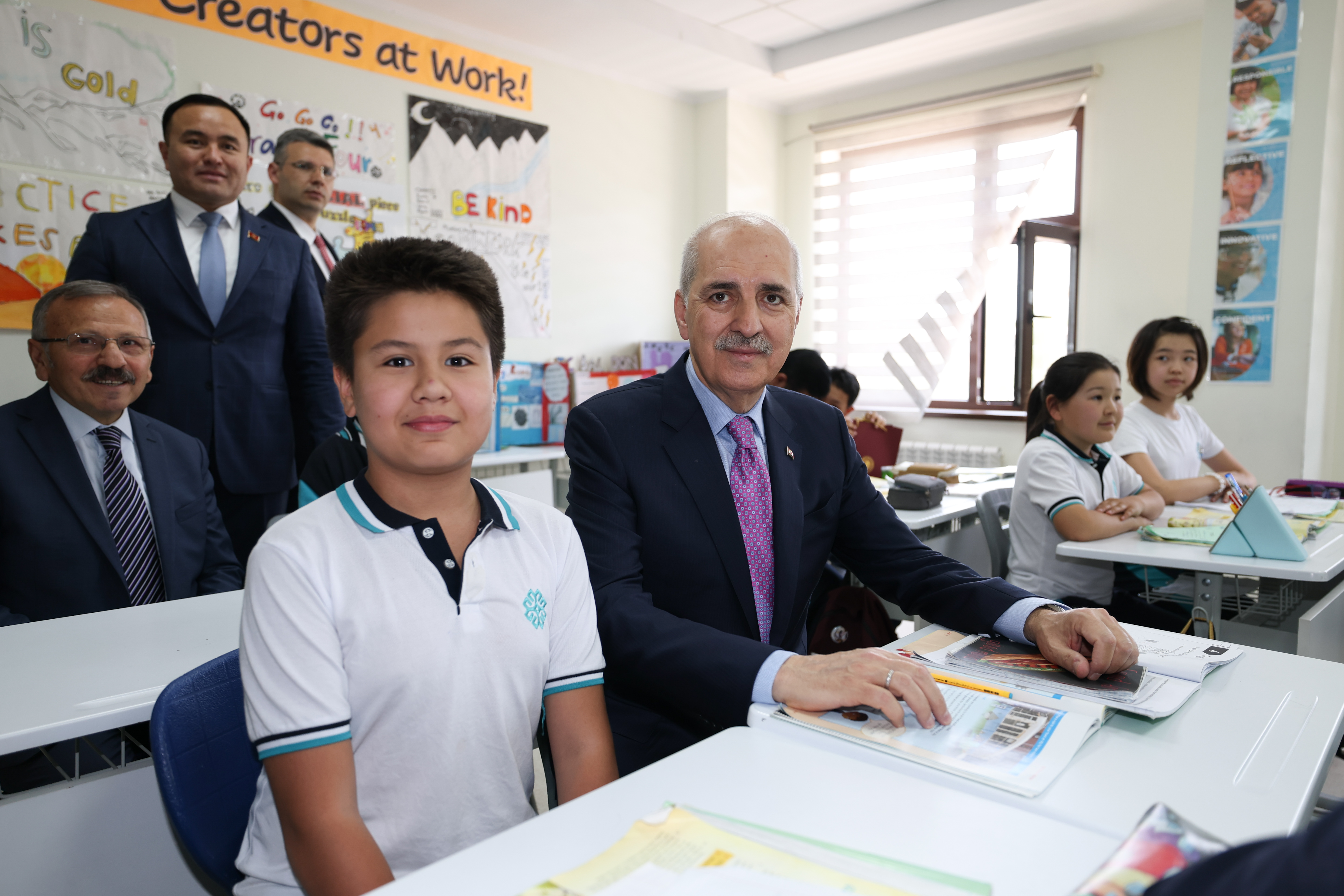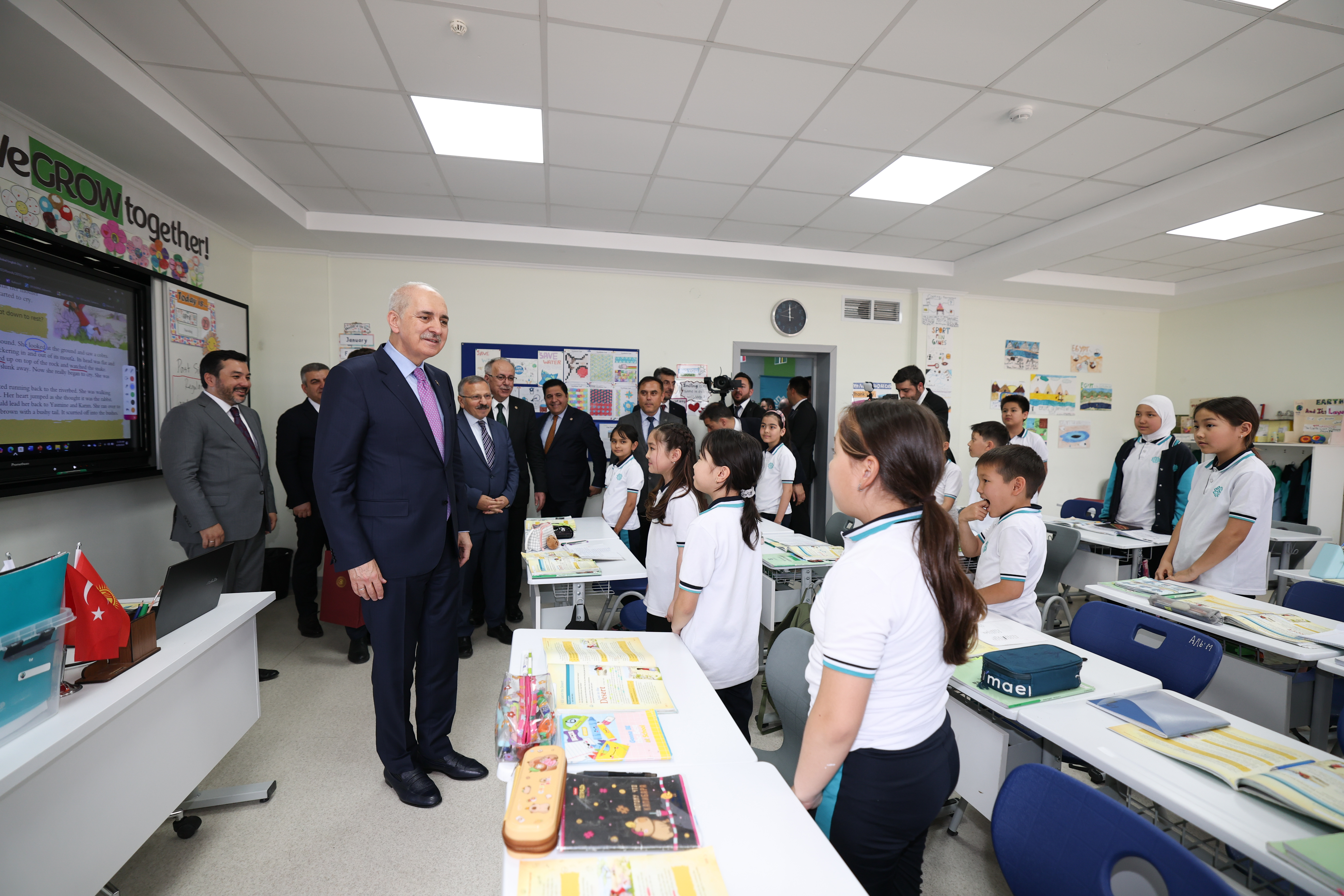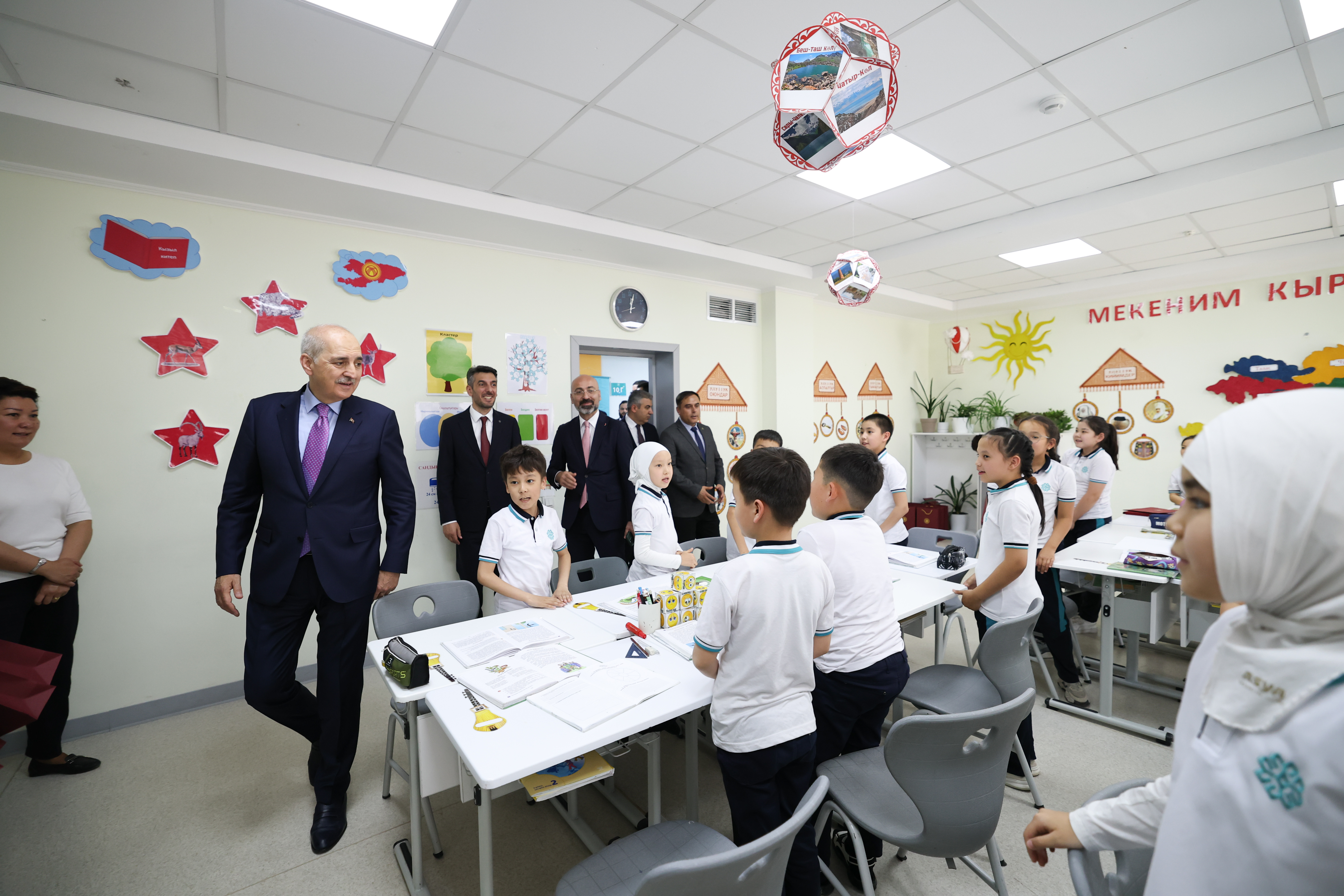 TBMM Başkanı Numan Kurtulmuş, resmi ziyaret gerçekleştirdiği Kırgızistan'ın başkenti Bişkek'te, Maarif Okulunu ziyaret etti.