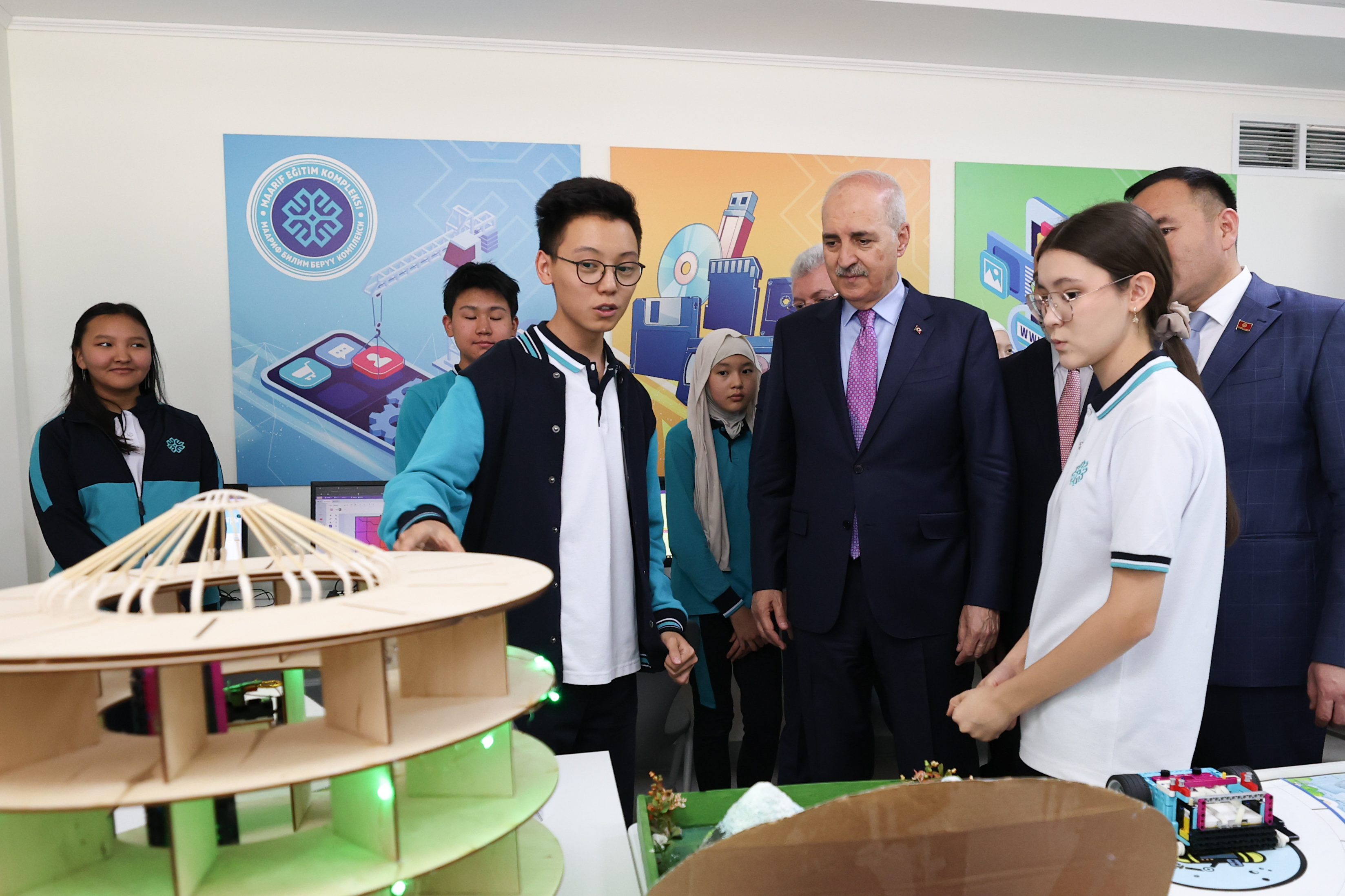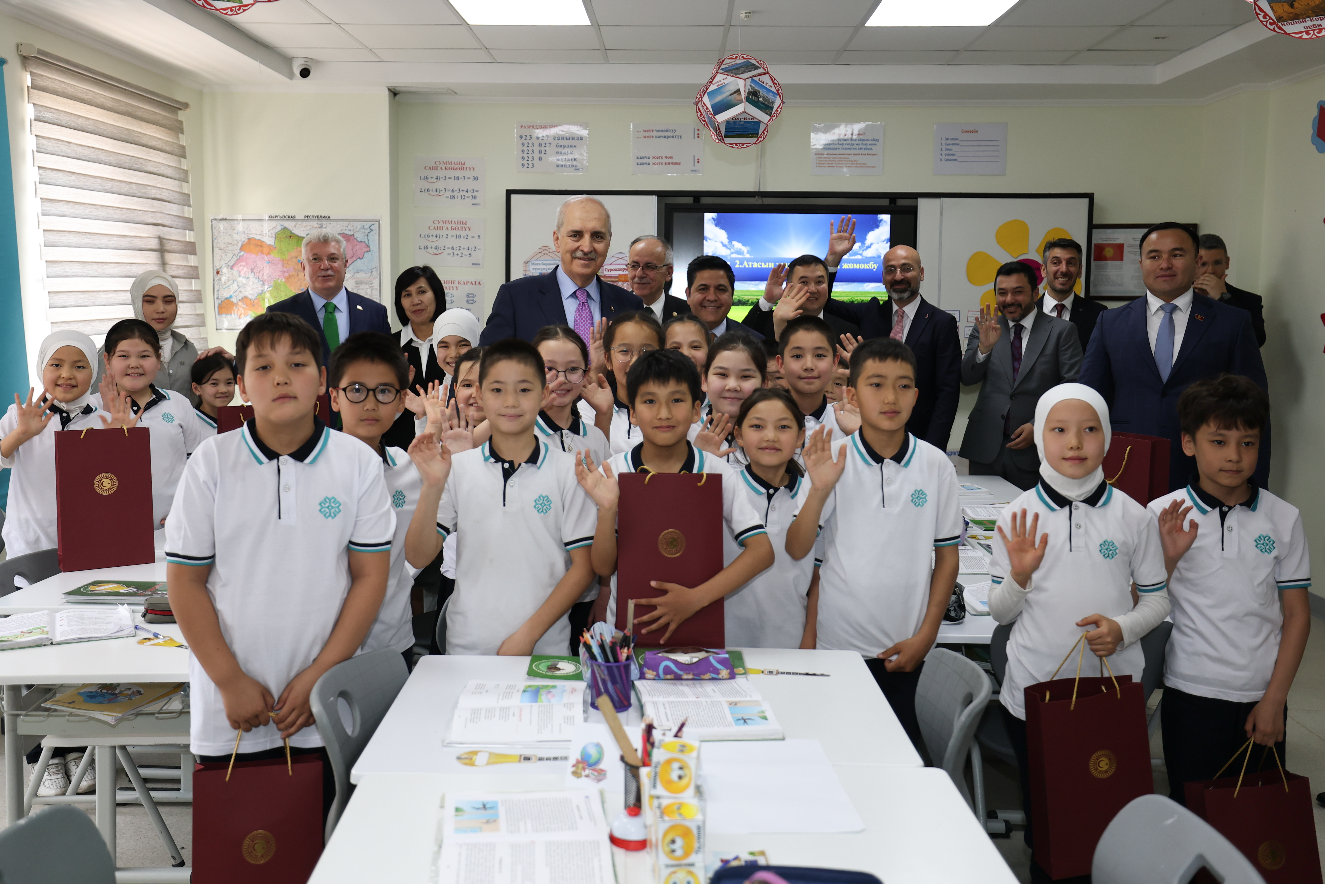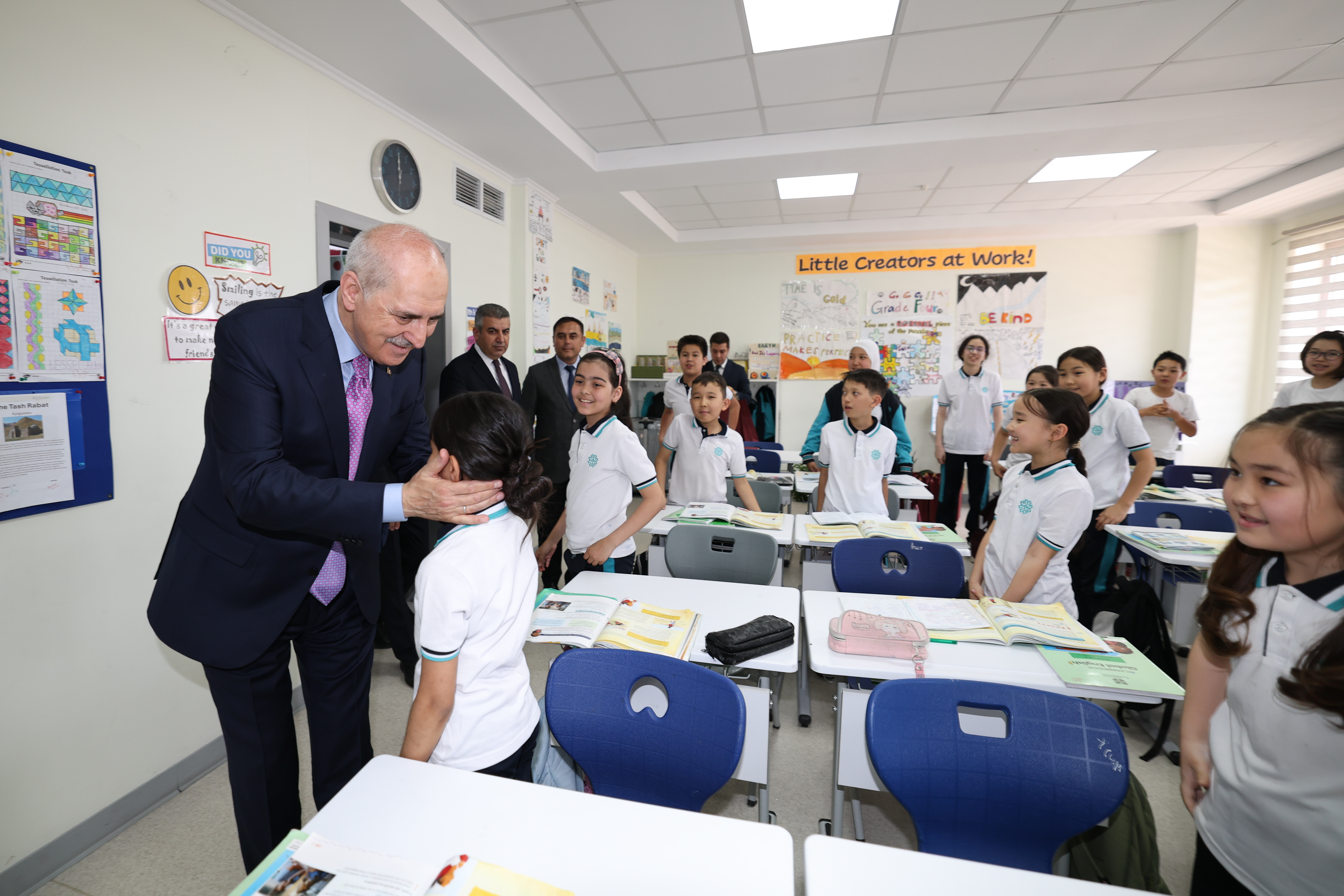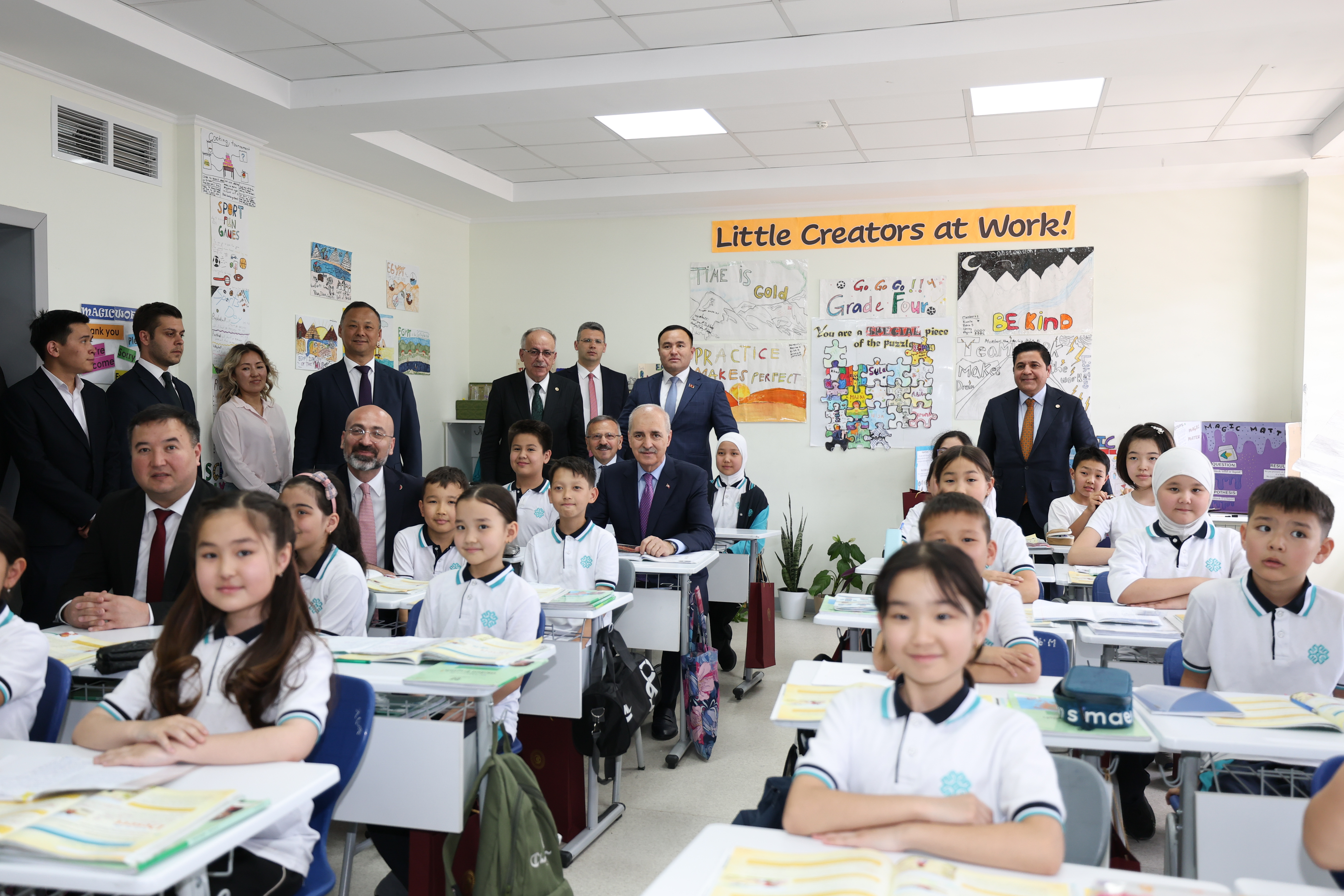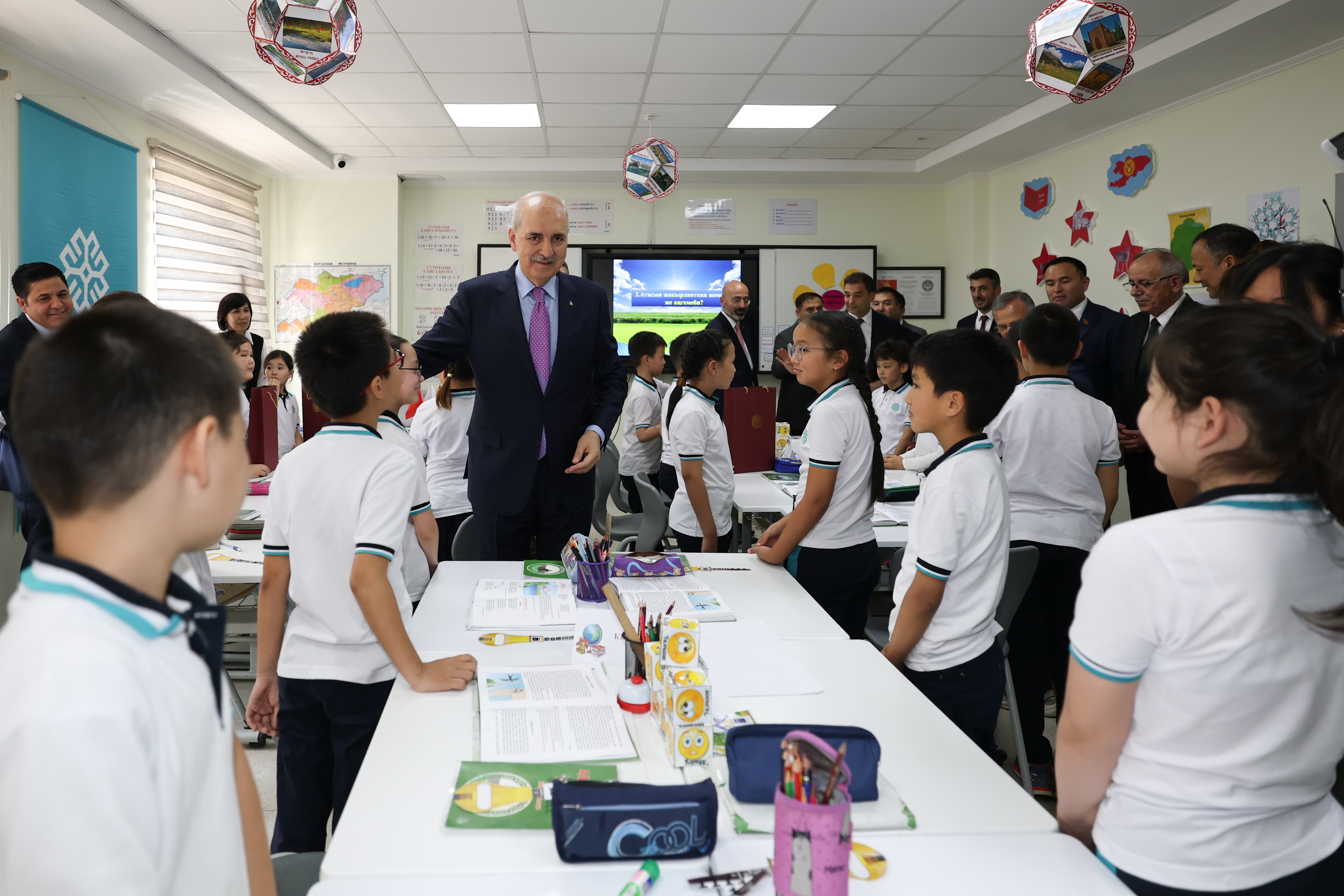 TBMM Başkanı Numan Kurtulmuş, resmi ziyaret gerçekleştirdiği Kırgızistan'ın başkenti Bişkek'te, Maarif Okulunu ziyaret etti.