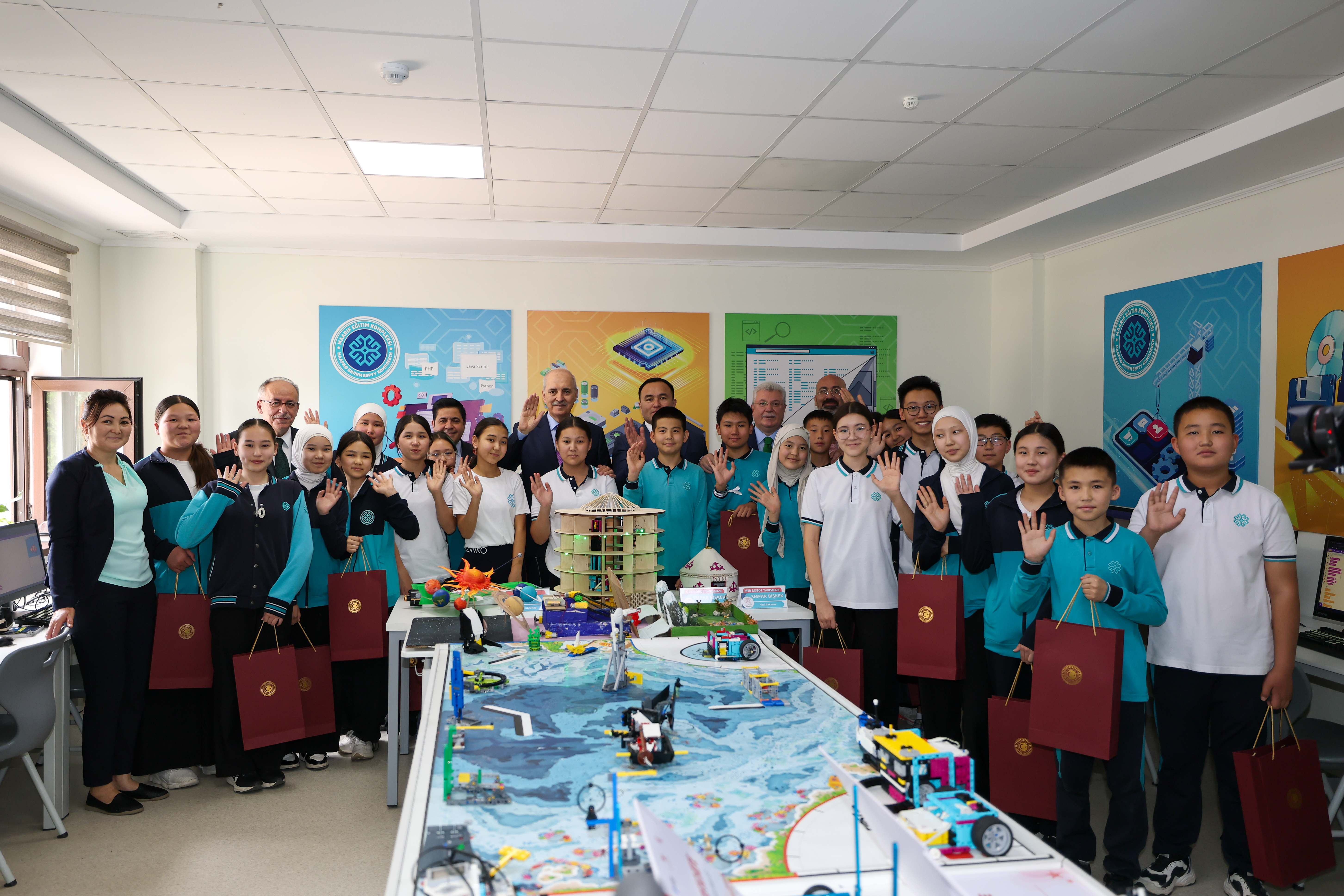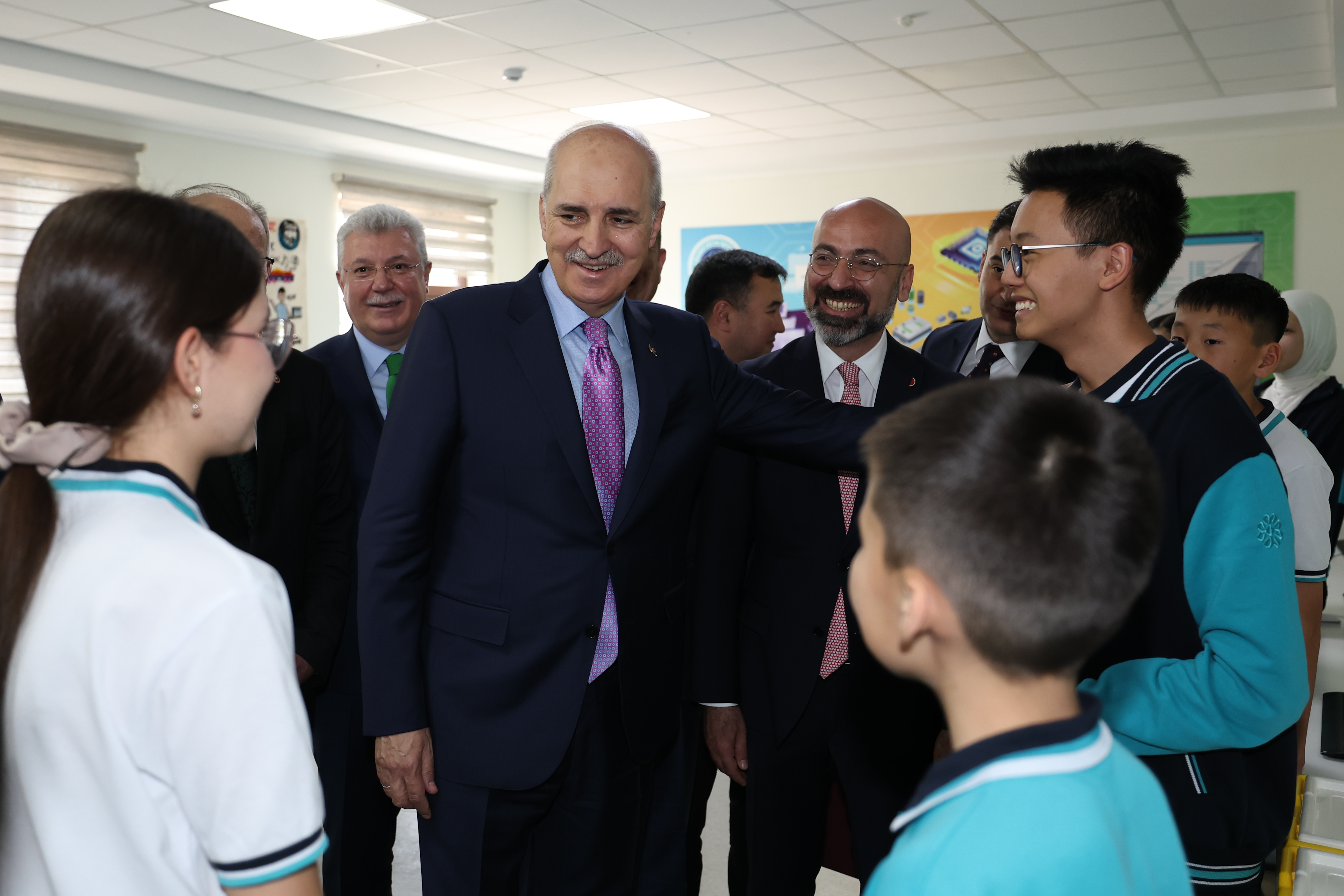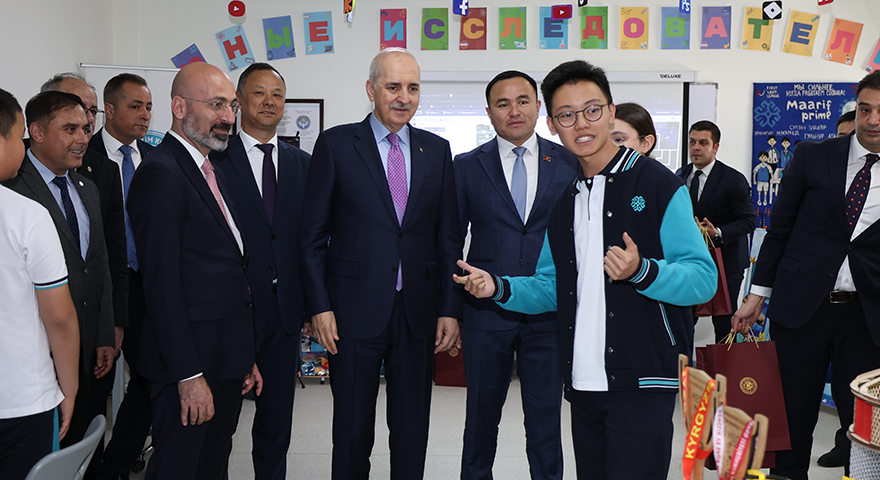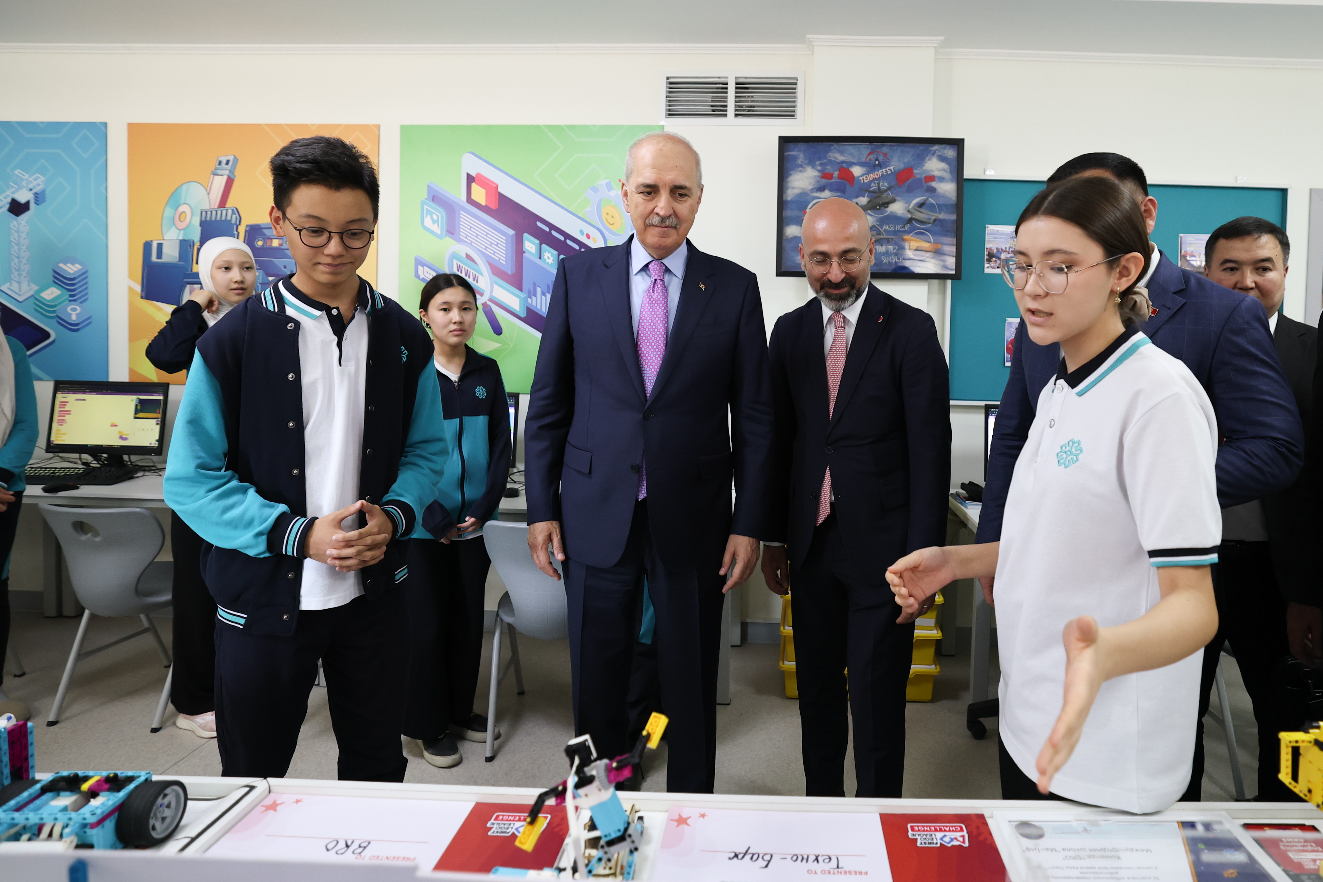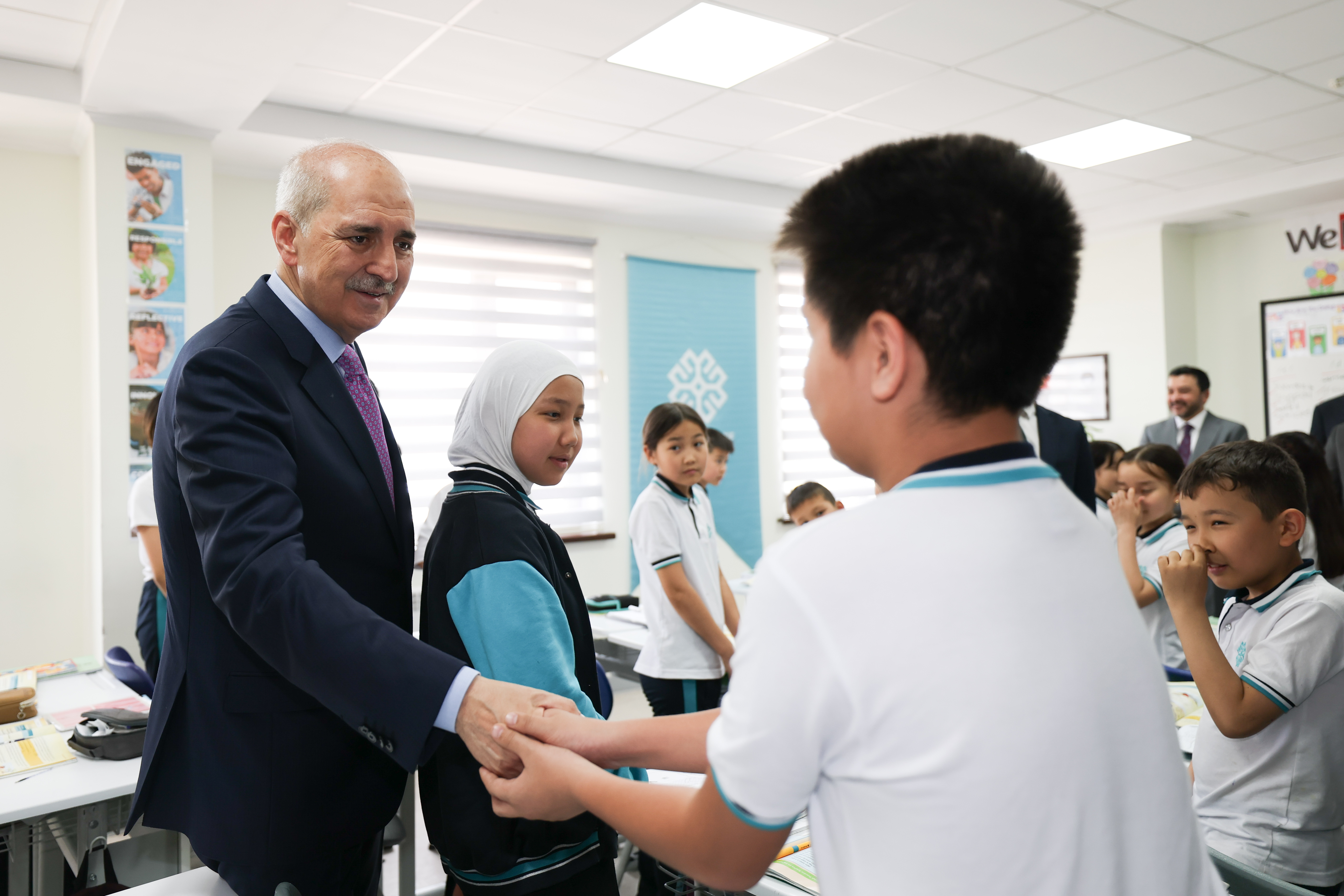TBMM Başkanı Numan Kurtulmuş, resmi ziyaret gerçekleştirdiği Kırgızistan'ın başkenti Bişkek'te, Maarif Okulunu ziyaret etti.