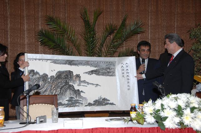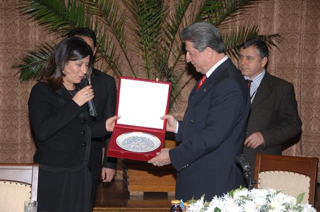 Konuşmaların ardından, engelliler, Toptan'a çeşitli armağanlar sunarken, Toptan da engellilere çeyrek altın hediye etti.