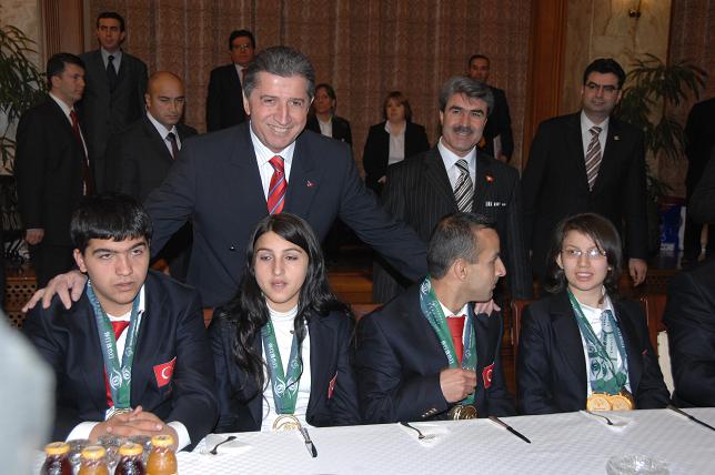 TBMM Başkanı Toptan, Devlet Bakanı Nimet Çubukçu başkanlığında, Özürlüler İdaresi Başkan Vekili Abdullah Güven, Özürlüler Konfederasyonu yöneticileri ile Uluslararası Olimpiyatlarda başarılı olmuş bir grup özürlü sporcuyu Tören Salonu'nda kabul etti.
