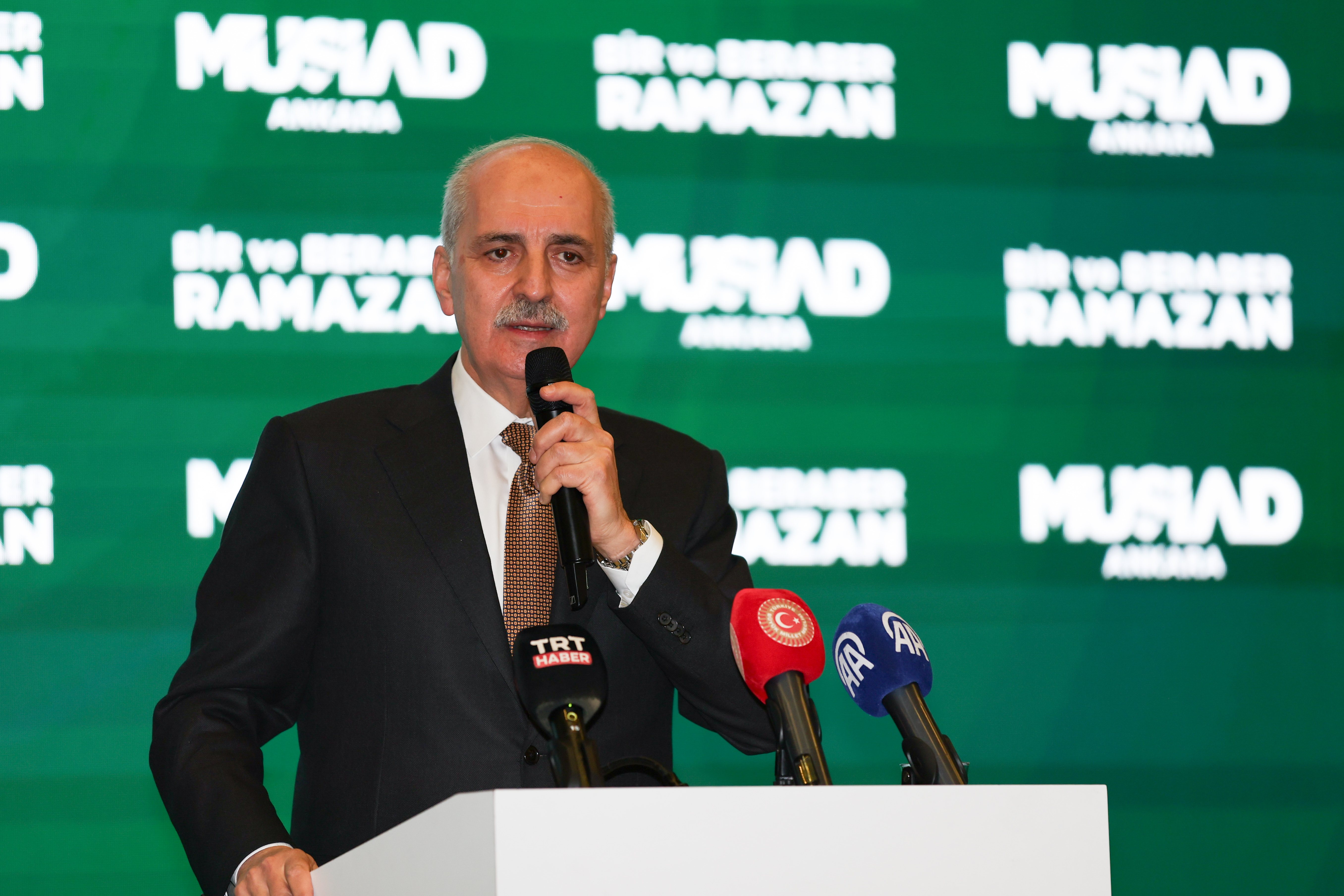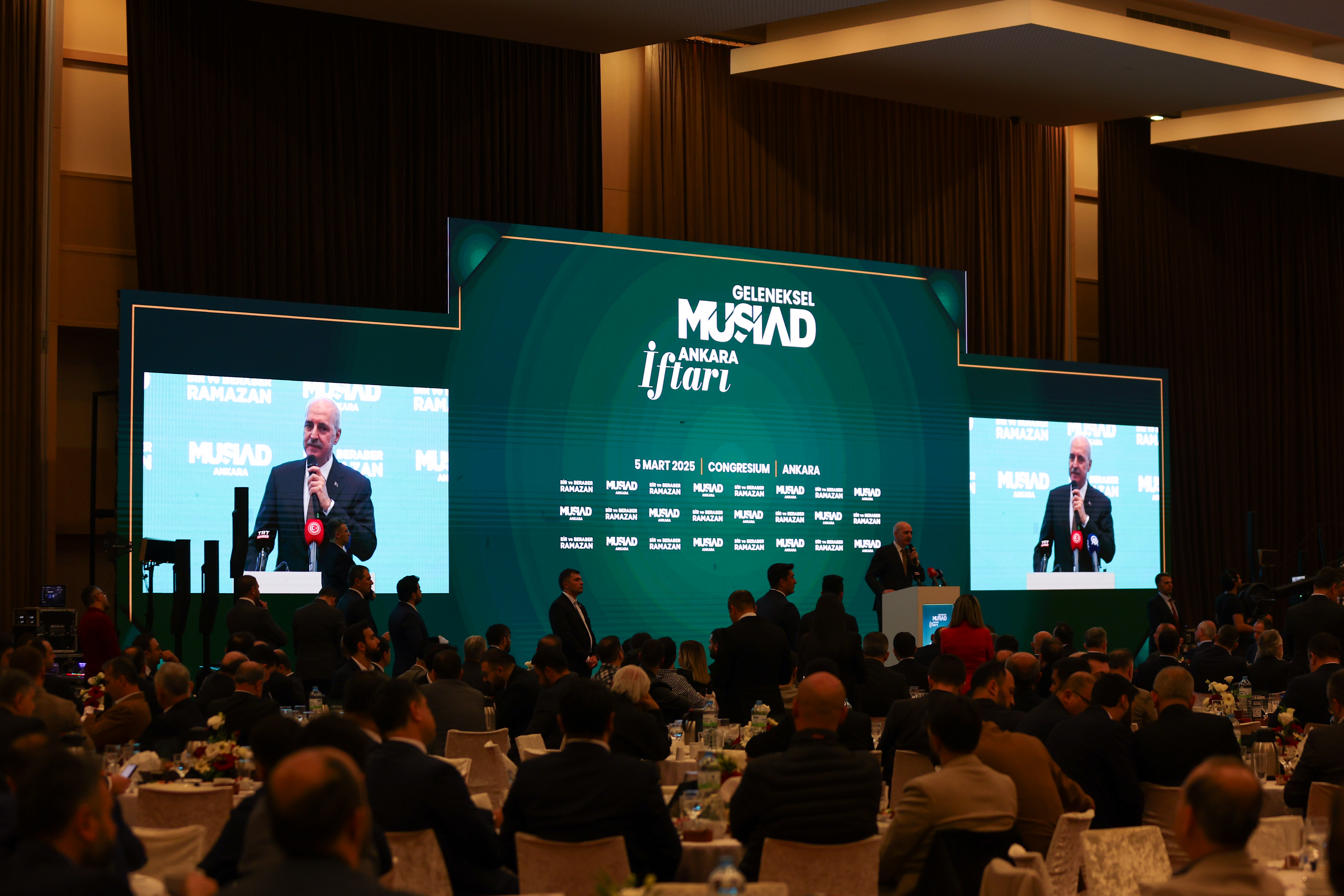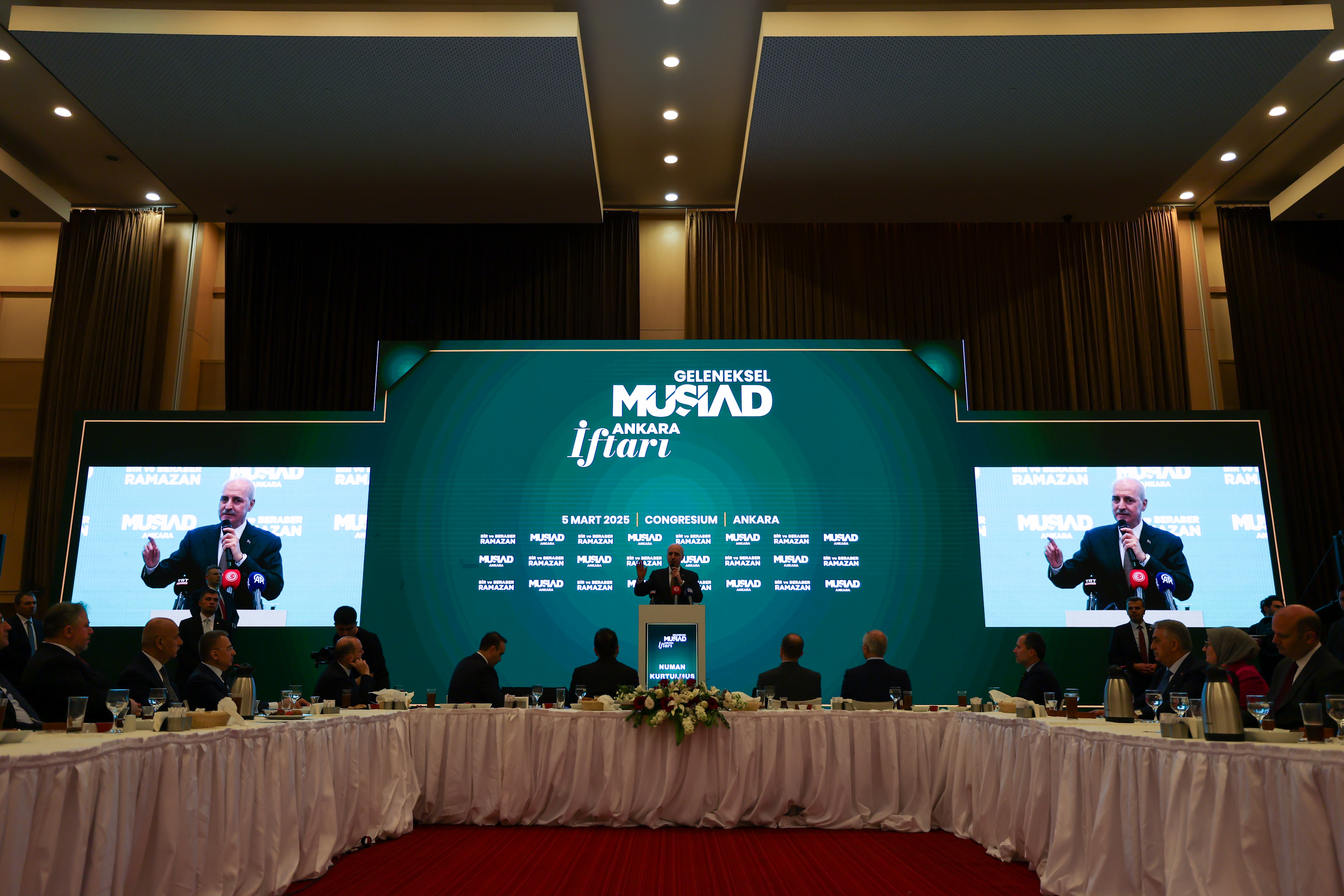 TBMM Başkanı Kurtulmuş, ATO Congresium Kongre ve Sergi Merkezi'nde düzenlenen MÜSİAD Ankara Geleneksel İftar Programı'nda yaptığı konuşmada, iftar programında MÜSİAD üyeleriyle bir araya gelmekten duyduğu memnuniyeti ifade ederek, ramazanın ülkeye, millete, İslam dünyasına ve insanlığa hayır, bereket, barış ve esenlik getirmesini diledi.