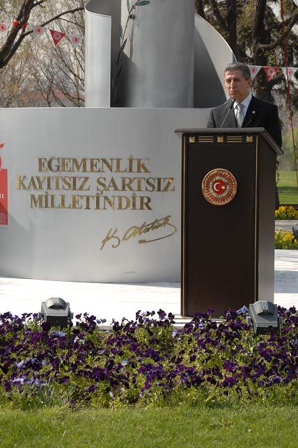açılmasıdır. Bu, dünyada ilktir. Genelde devletler kurulur, o devletler kendi parlamentolarını kurarlar. 19 Mayıs 1919'da Samsun'da başlatılan büyük halk hareketi, Atatürk'ün önderliğinde 23 Nisan 1920'de Meclisi açmak suretiyle, halkın egemenliği bu topraklarda hakim unsur kılmak suretiyle başlatılmıştır. O nedenle, bizim için çok büyük önem taşımaktadır. O Meclis, kahraman milletvekilleri sayesinde, daha sonra Cumhuriyet'i kurmuş, devrimleri gerçekleştirmiş ve bugünkü Türkiye Cumhuriyeti'ni bize emanet etmiştir.