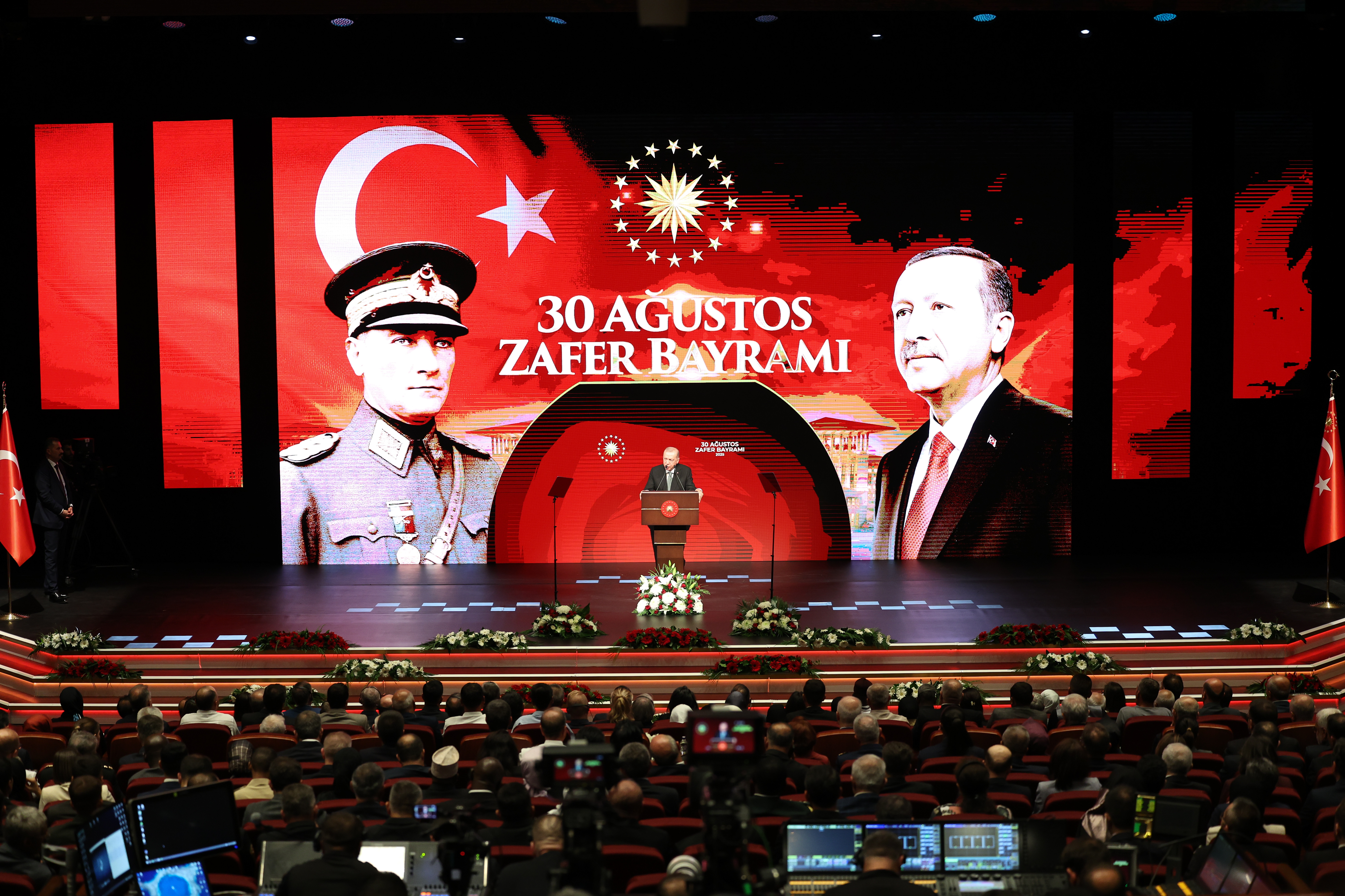 Diyanet İşleri Başkanı Ali Erbaş’ın duasıyla devam eden programda, 30 Ağustos Zafer Bayramı’na ilişkin hazırlanan kısa film gösterildi. Suriye Harekat Alanı, TCG Kınalıada, Libya, Havadan Erken İhbar ve Kontrol Uçağı, Somali, Pençe-Kilit Operasyonu bölgesi ve Katar’da görev yapan Türk Silahlı Kuvvetleri personeli tarafından gönderilen selamlama ve tebrik videoları davetlilere izletildi.