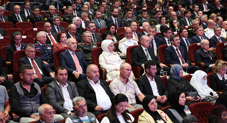 Programa, Cumhurbaşkanı Erdoğan’ın eşi Emine Erdoğan, TBMM Başkanı Numan Kurtulmuş, Cumhurbaşkanı Yardımcısı Cevdet Yılmaz, Cumhurbaşkanlığı Kabinesi üyeleri, MHP Genel Başkanı Devlet Bahçeli, bazı siyasi parti yöneticileri, milletvekilleri, yabancı ülke temsilcileri ve davetliler katıldı.