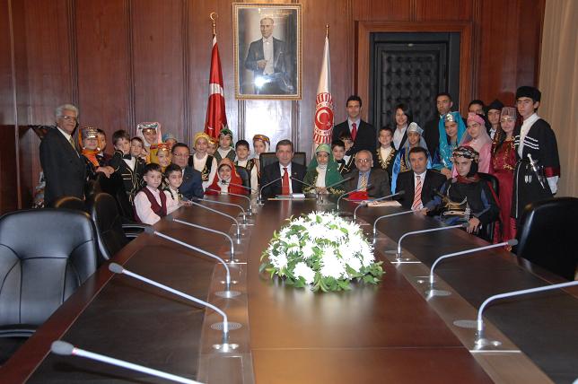 Kabulde konuşan TRT Çocuk ve Gençlik Halk Oyunları Topluluğunun üyeleri, TBMM Başkanı Toptan'a, kendilerini kabul etmesinden dolayı teşekkür