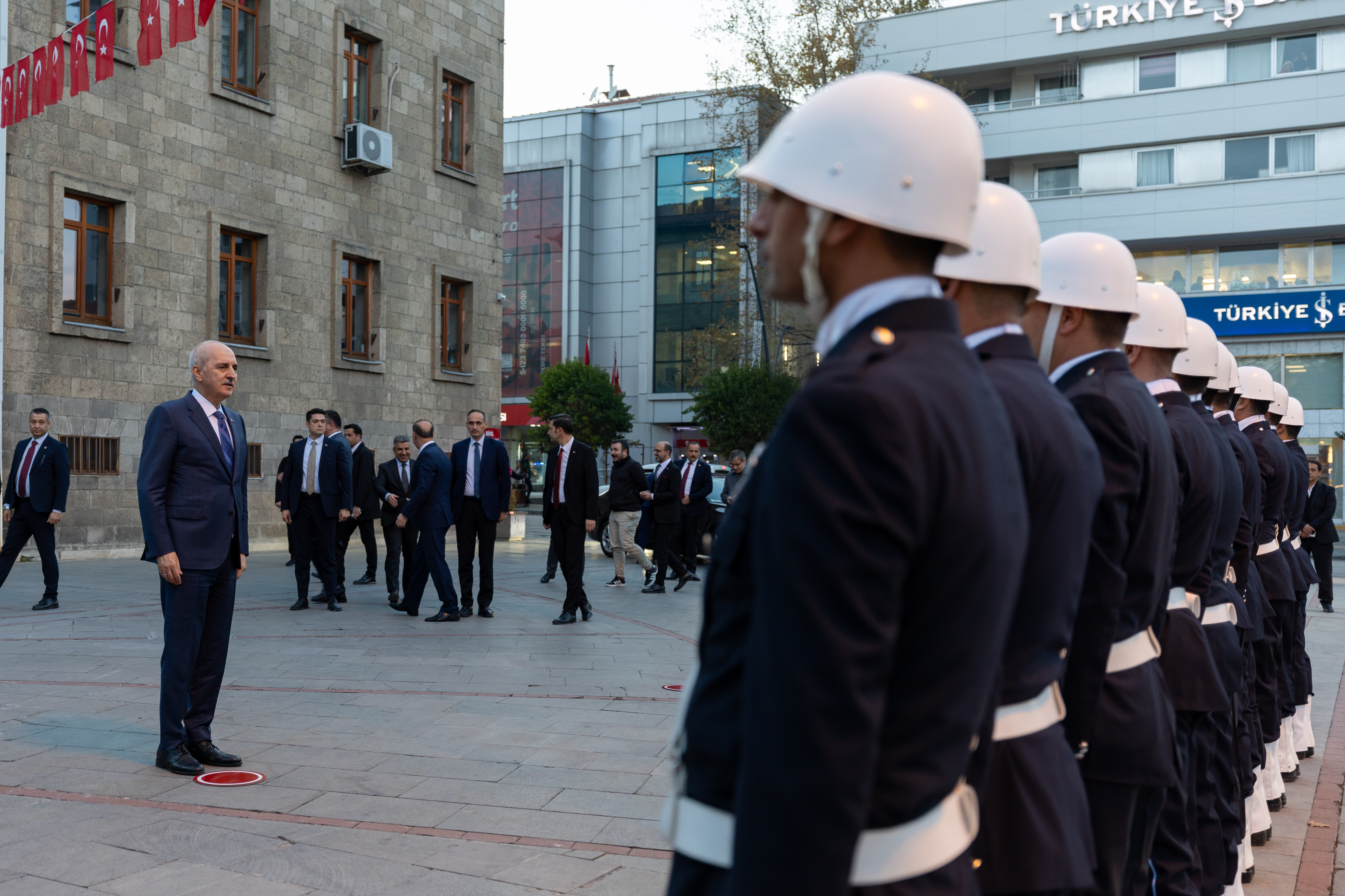 Burada polis tören mangasını selamlayan Kurtulmuş, ardından Valilik Şeref Defteri'ni imzaladı, Vali Erin'den kentte yürütülen çalışmalar hakkında bilgi aldı.