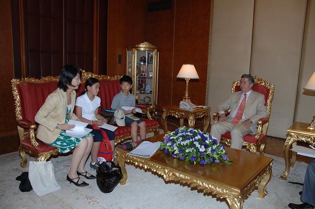 Japon Asahi Kids Gazetesi'nin çocuk muhabirlerinin, Toptan ile dünyanın tek çocuk