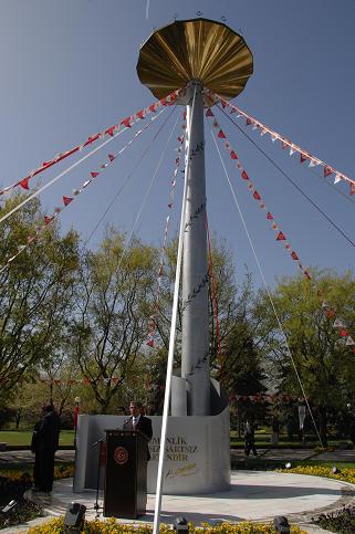 Platformda, Atatürk'e ait olan "Egemenlik Kayıtsız Şartsız Milletindir" sözünün ve ilk Meclisin kurucularından 437 milletvekilinin ismi yer aldığı Milli Egemenlik Meşalesi çok çeşitli simgeler taşıyor.