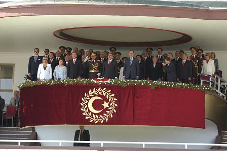 Cumhurbaşkanı Abdullah Gül'ün şeref tribünündeki yerini alması ve
