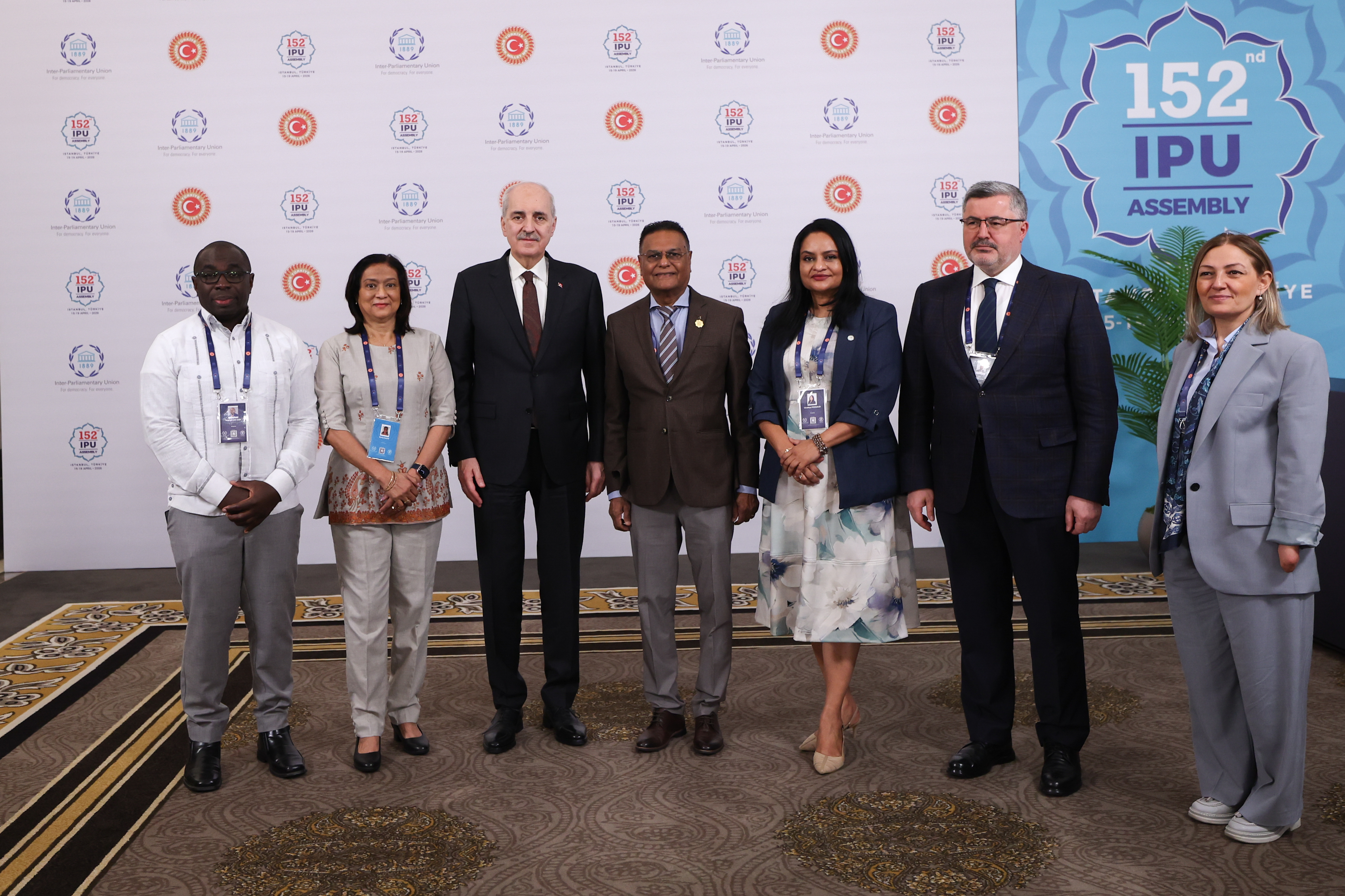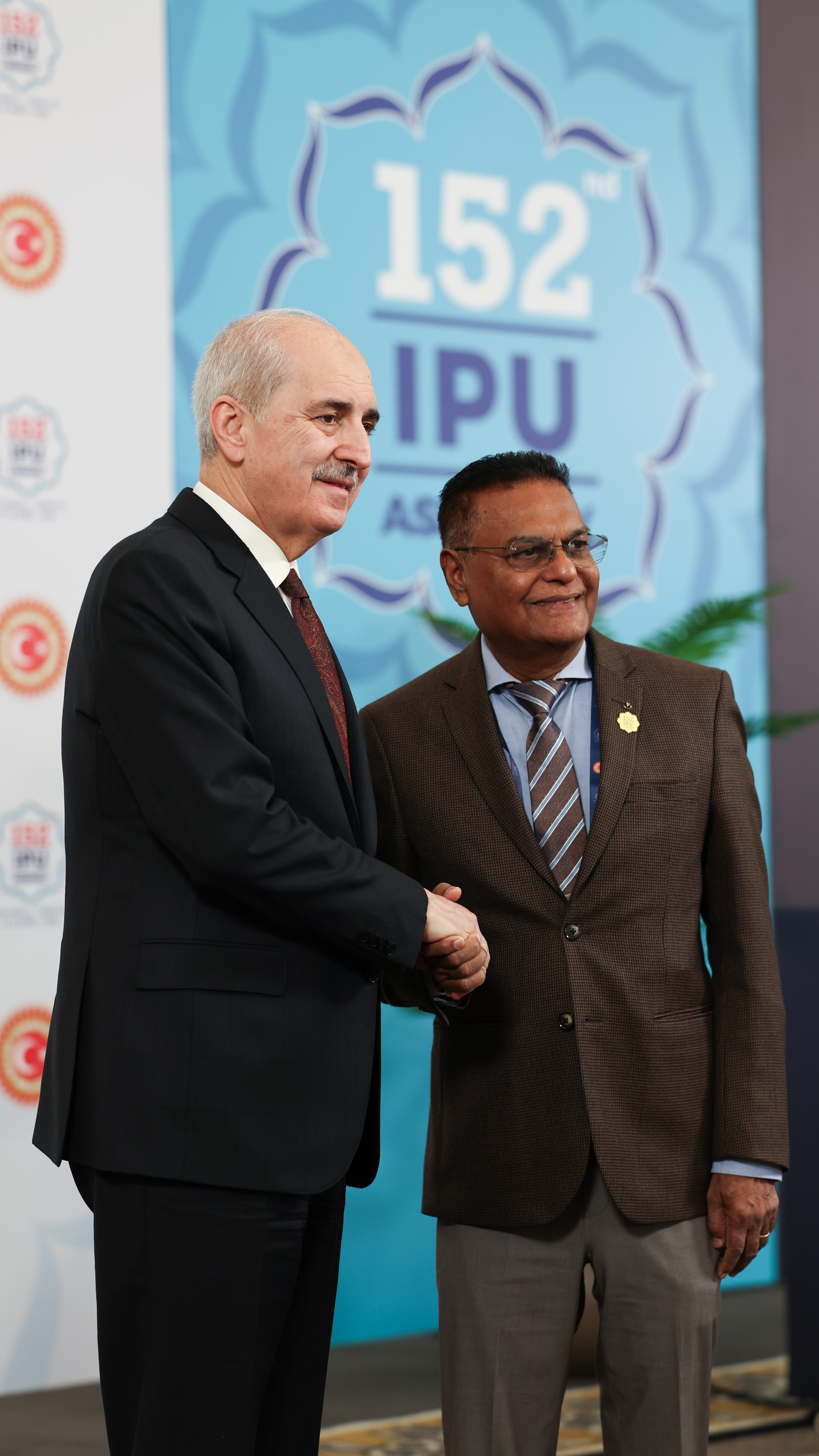 TBMM Başkanı Numan Kurtulmuş, Parlamentolar Arası Birlik (PAB) 152’nci Genel Kurulu kapsamında İstanbul’da temaslarını sürdürüyor. Kurtulmuş, bu çerçevede Guyana Ulusal Meclis Başkanı Manzoor Nadir ile bir araya geldi.