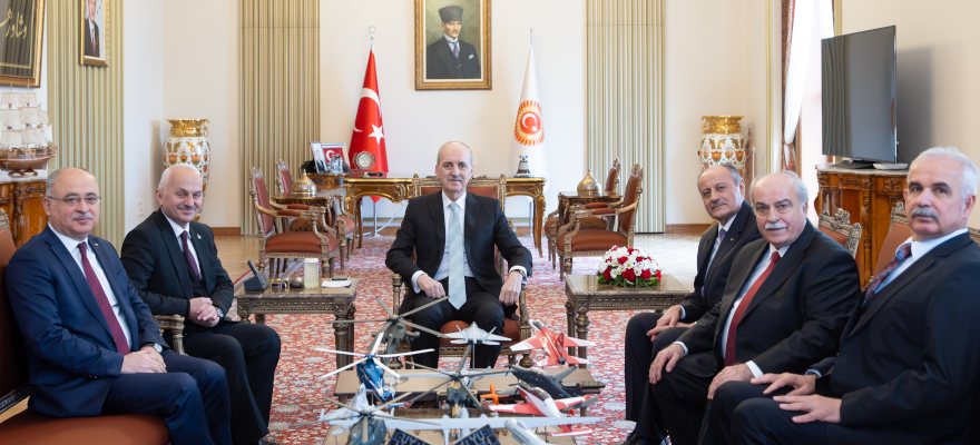 Türkiye Büyük Millet Meclisi (TBMM) Başkanı Numan Kurtulmuş, Türk Havacılık ve Uzay Sanayii Anonim Şirketi (TUSAŞ) Yönetim Kurulu Başkanı Rafet Bozdoğan, TUSAŞ Genel Müdürü Temel Kotil ve TRMOTOR Genel Müdürü Osman Saim Dinç ile TUSAŞ Yönetim Kurulu üyelerini kabul etti.