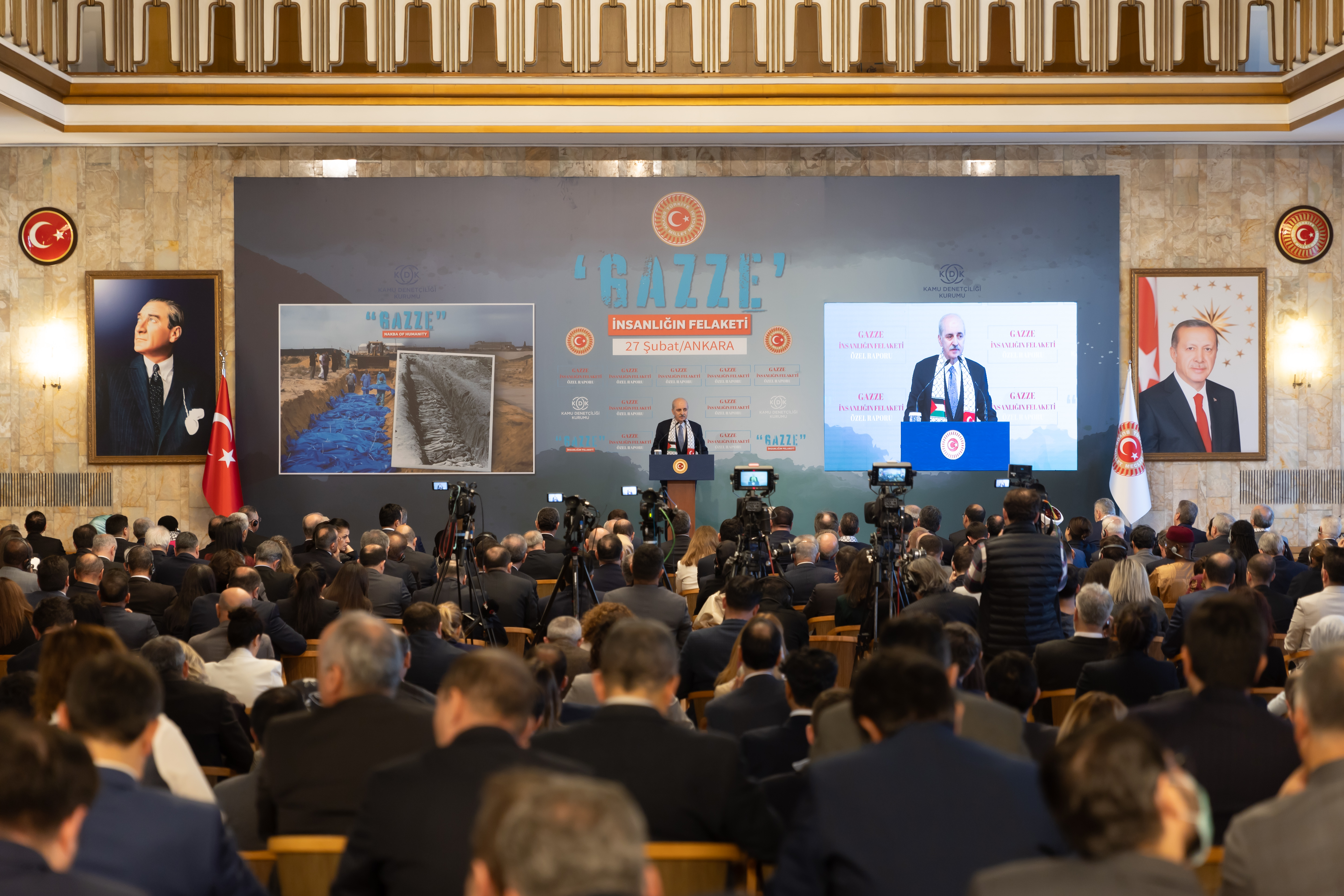 TBMM Başkanı Kurtulmuş, TBMM Tören Salonu’nda Kamu Denetçiliği Kurumu (KDK) tarafından düzenlenen "Gazze: İnsanlığın Felaketi" Özel Raporu Tanıtım Programı'nda yaptığı konuşmada, gösterdikleri hassasiyet ve ortaya koydukları nitelikli çalışma dolayısıyla Kamu Başdenetçisi Şeref Malkoç, Kamu Denetçisi Fatma Benli ile kurumdaki uzmanlara teşekkür etti.