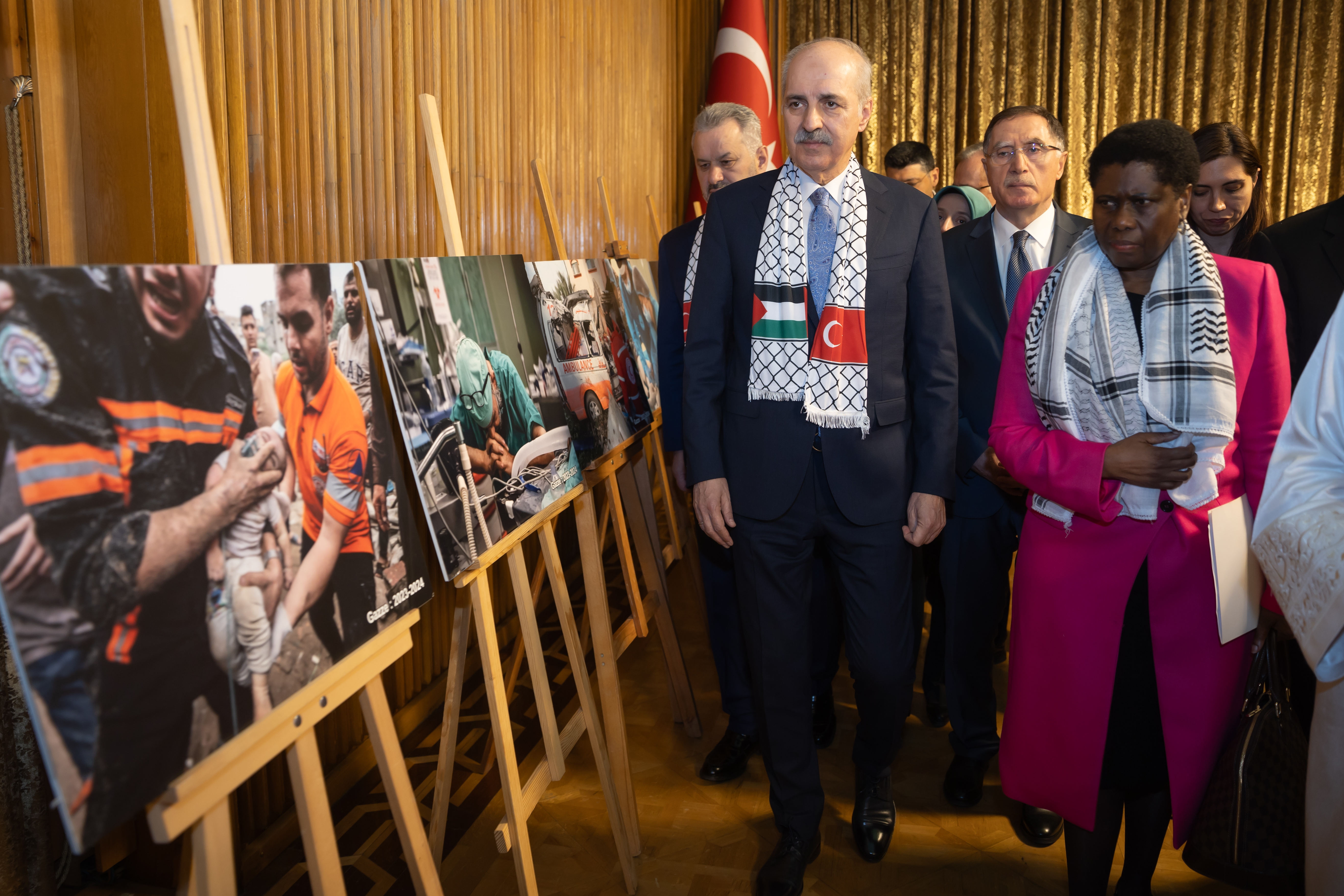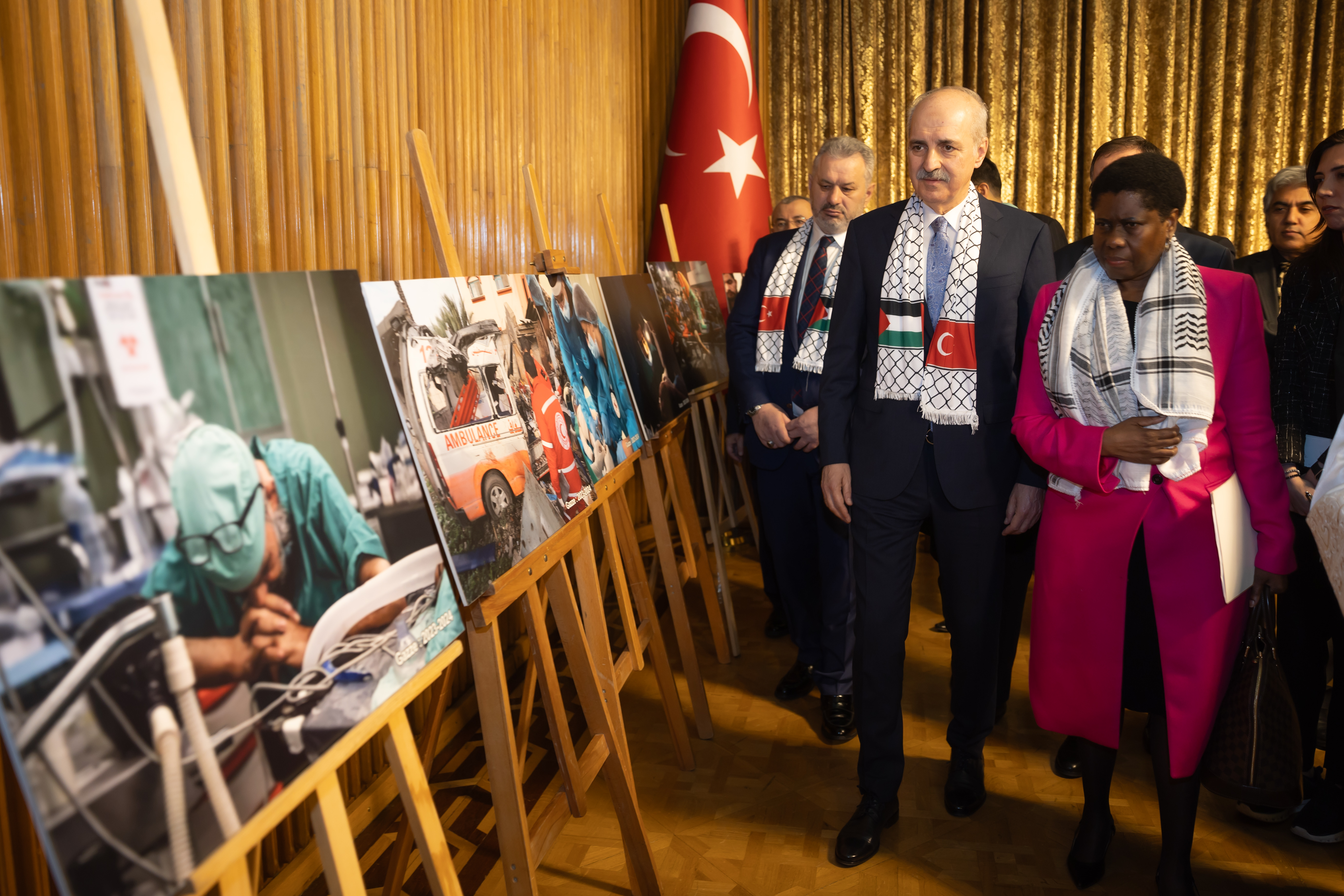 Güney Afrika Cumhuriyeti'nin teşebbüsüyle Uluslararası Adalet Divanında açılan davada gündeme getirilen delillerin önemli bir kısmı Anadolu Ajansının sağladığı, TRT’nin çekimini yaptığı delillerdir. Bu anlamda Cumhurbaşkanlığına bağlı İletişim Başkanlığının, özellikle İsrail'in en iyi şekilde bildiği dezenformasyona karşı uluslararası alanda vermiş olduğu mücadele de fevkalade takdire şayandır. Ayrıca insani yardımların ulaştırılması bakımından Kızılay başta olmak üzere bütün yardım kuruluşlarımızın, yine aynı şekilde oradan yaralıların getirilmesi bakımından da Sağlık Bakanlığımızın, velhasıl bütün kuruluşlarımızın en önemli vazifelerinden birisi 7 Ekim'den bu yana İsrail'in saldırganlığının karşısında durmak, Filistin halkının yanında durabilmektir."