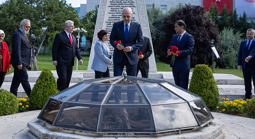 Kurtulmuş ve beraberindekiler, 15 Temmuz 2016 gecesi FETÖ mensuplarınca TBMM'ye atılan ilk bombanın düştüğü alanda yer alan anıta karanfil bıraktı. Kurtulmuş, 15 Temmuz'da şehit düşen vatandaşlar için dua etti.