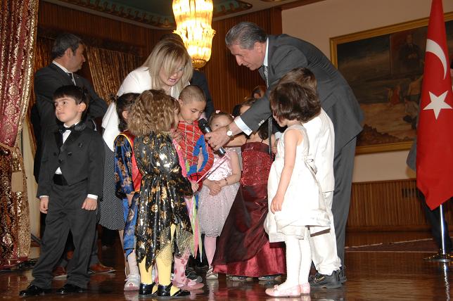 Kabule katılan çocuklarla teker teker ilgilenen ve onlarla fotoğraf çektiren Toptan, çocuklara içinde şapka, tişört, kalem ve Meclisi tanıtıcı kitaplar bulunan bir set hediye etti.