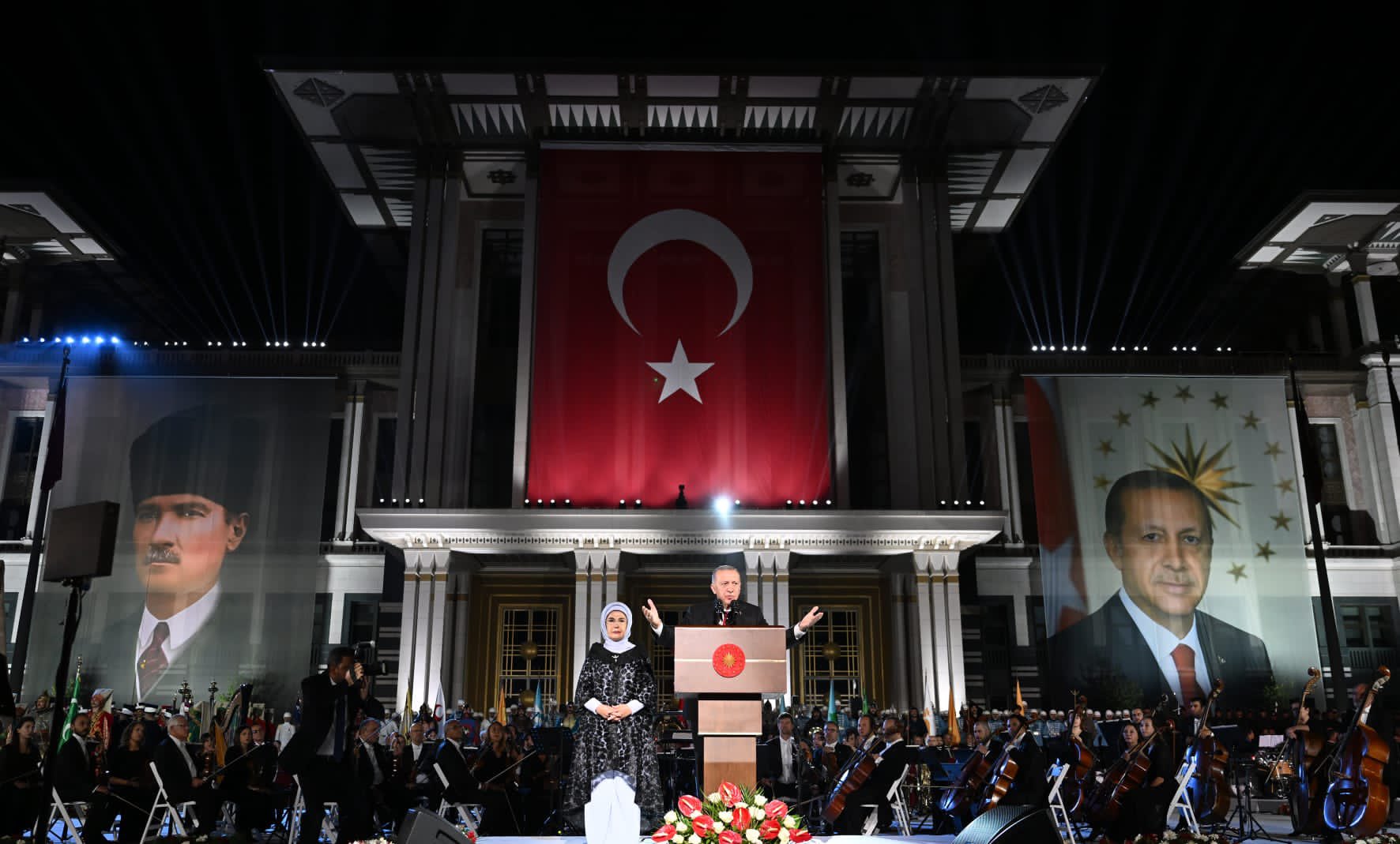 Programa Cumhurbaşkanı Recep Tayyip Erdoğan ve eşi Emine Erdoğan'ın yanı sıra, TBMM Başkanı Numan Kurtulmuş, Cumhurbaşkanlığı Kabinesi üyeleri ve davetliler katıldı.