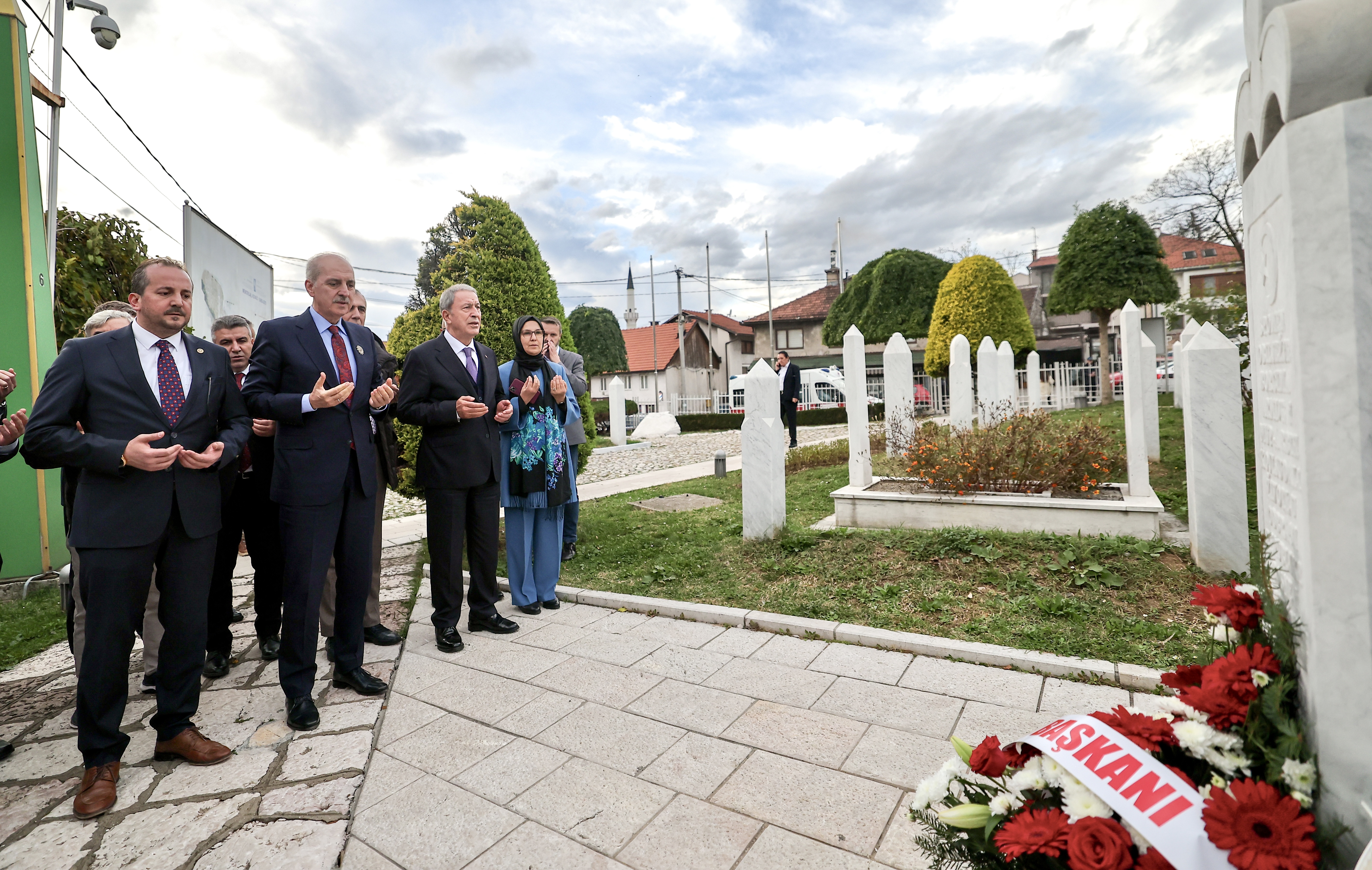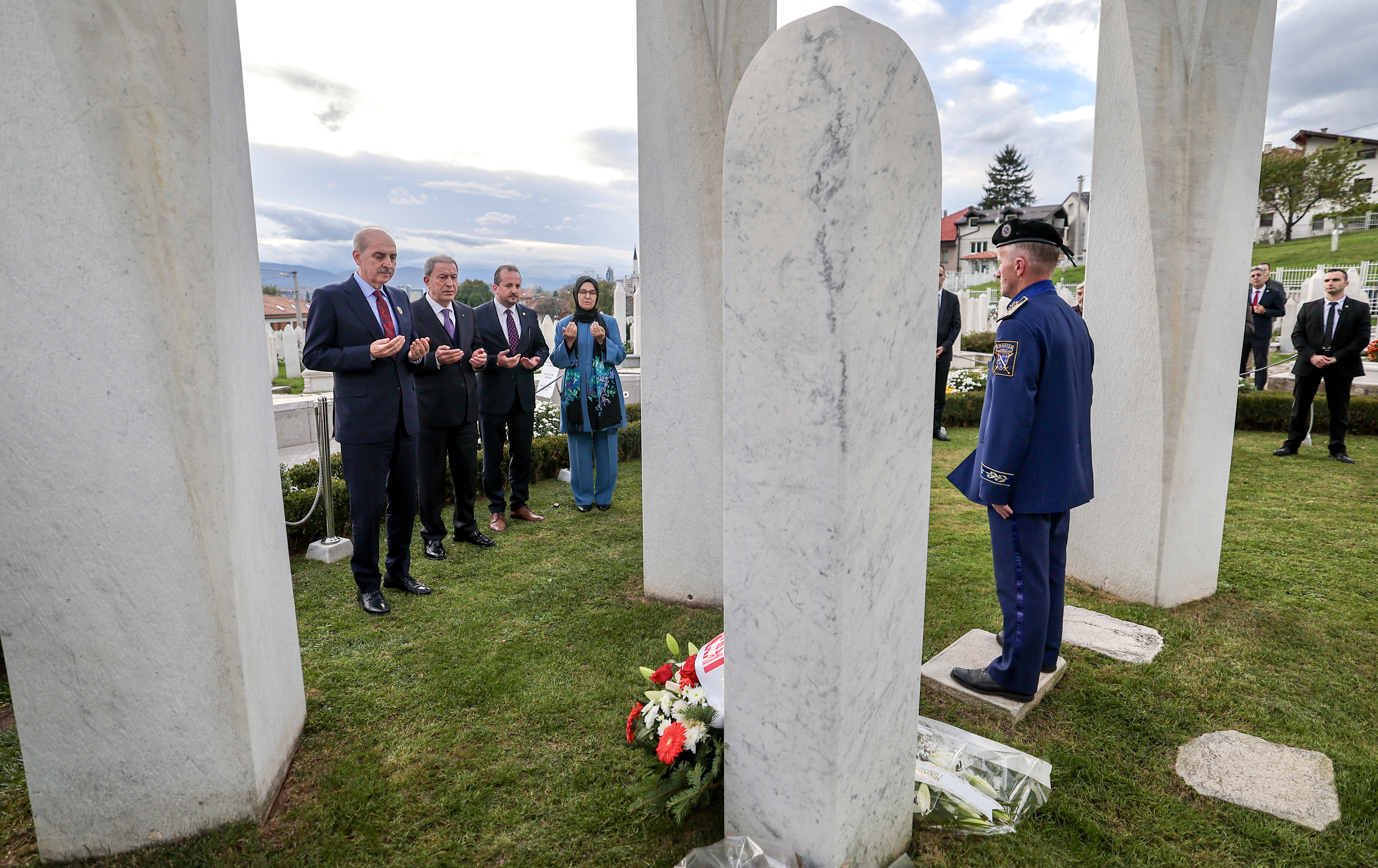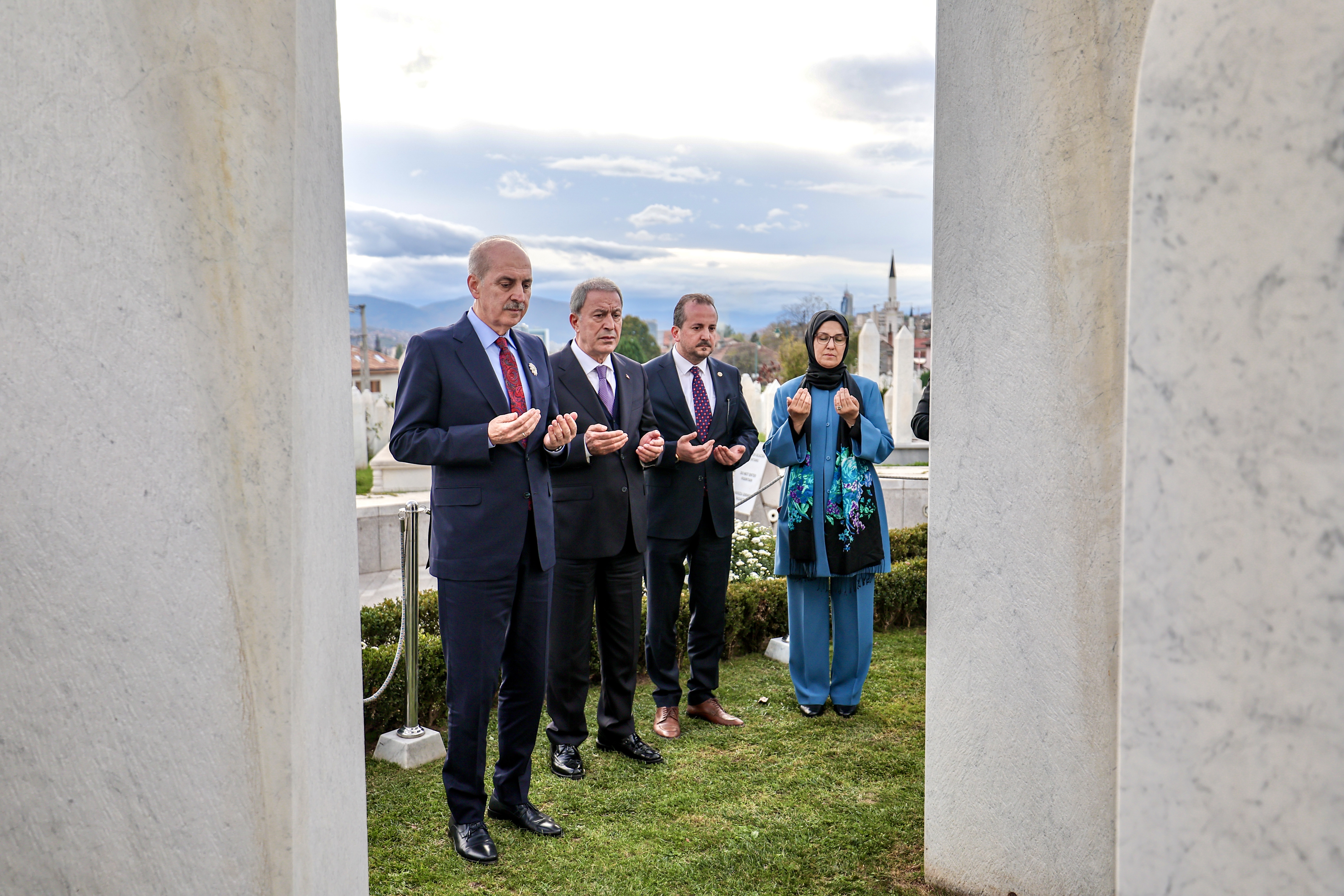 Kurtulmuş, Kovaçi Şehitliği'nde Meçhul Asker Anıtı'na ve Aliya İzzetbegoviç'in mezarına çiçek bırakarak dua etti.
