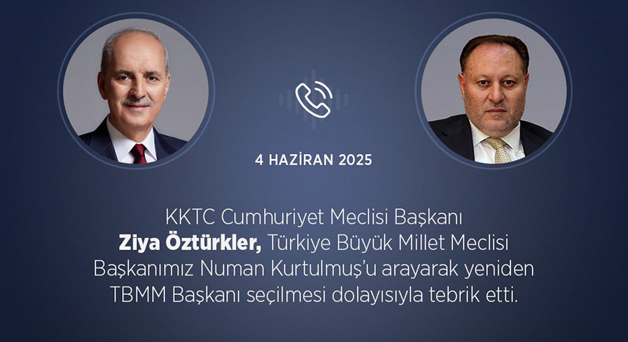 KKTC Cumhuriyet Meclisi Başkanı Ziya Öztürkler, TBMM Başkanı Numan Kurtulmuş'u telefonla arayarak yeniden TBMM Başkanı seçilmesi dolayısıyla tebrik etti.