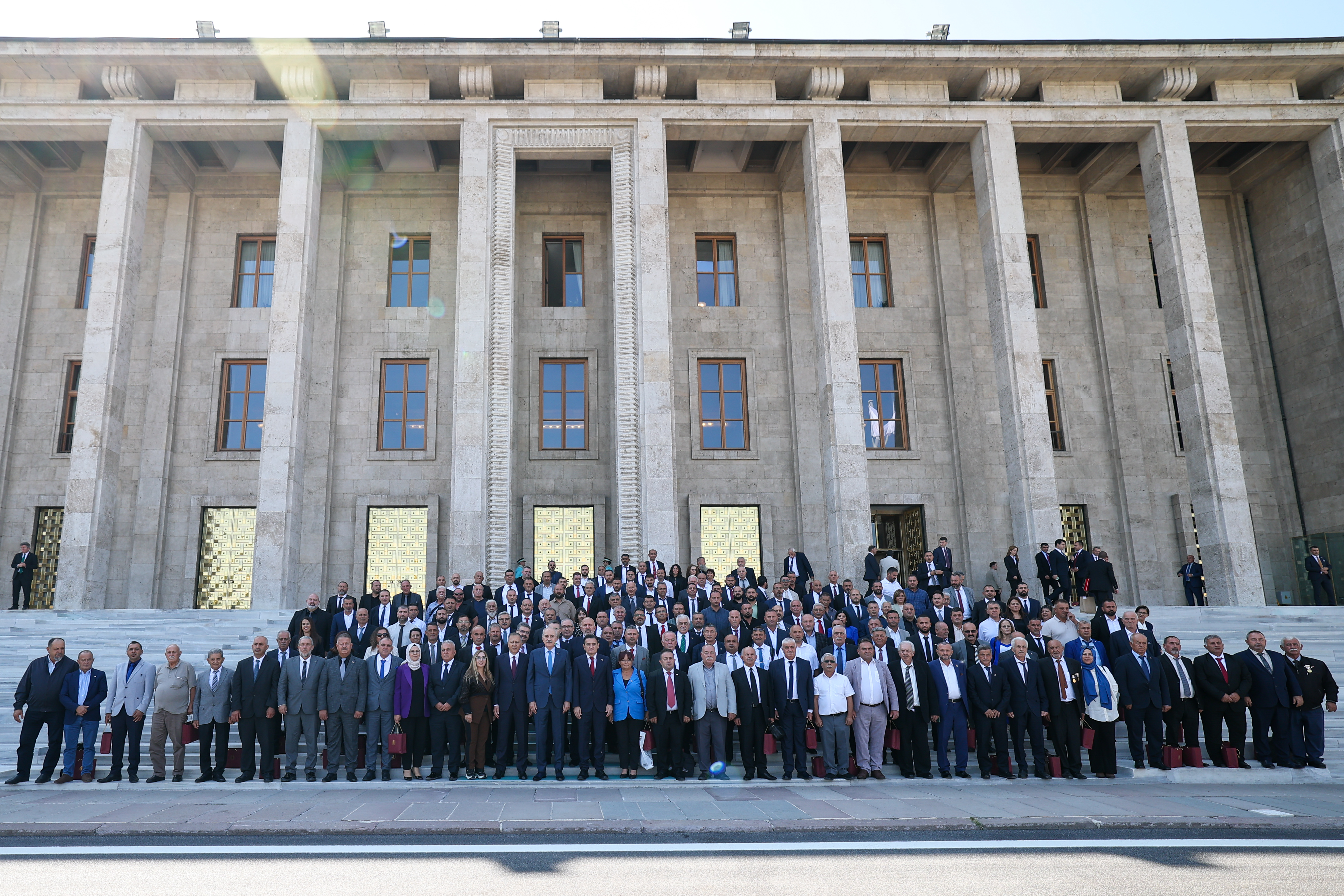 Kurtulmuş'a, günün asına muhtarlar tarafından hediye takdim edildi. Kurtulmuş, muhtarlarla Şeref Merdivenlerinde hatıra fotoğrafı çektirdi. Muhtarlar daha sonra Genel Kurul Salonu'nu ziyaret etti.