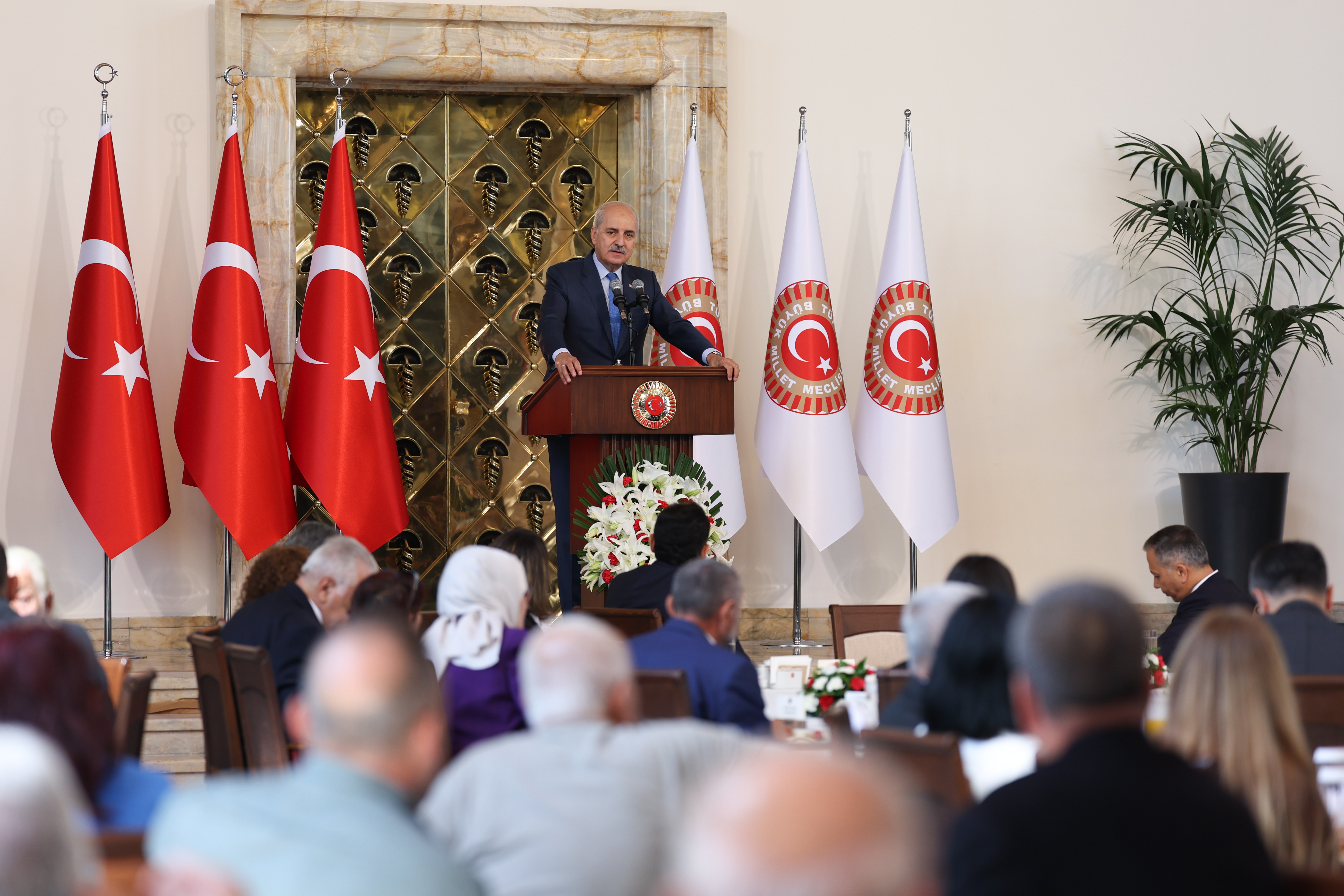 Meclis Şeref Salonu'nda düzenlenen kabulde konuşan TBMM Başkanı Kurtulmuş, milli iradenin teceligahı, Türkiye demokrasinin kalbi olan TBMM'de, KKTC’den gelen muhtarları ağırlamaktan duyduğu memnuniyeti dile getirdi.
