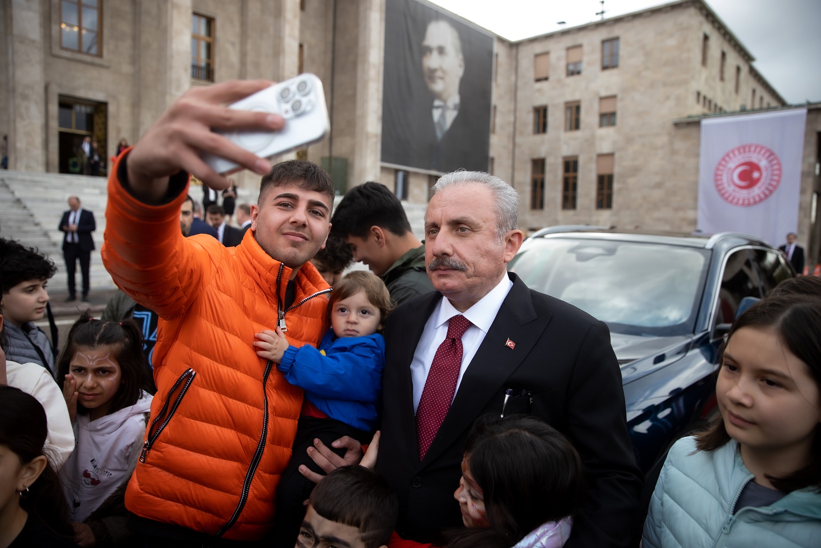 TBMM Başkanı Mustafa Şentop, TBMM'nin açılışının 103. yıl dönümü dolayısıyla özel gündemle toplanan TBMM Genel Kurulunun ardından Şeref Holü'nde kendisini bekleyen çocuklar ile fotoğraf çektirdi.