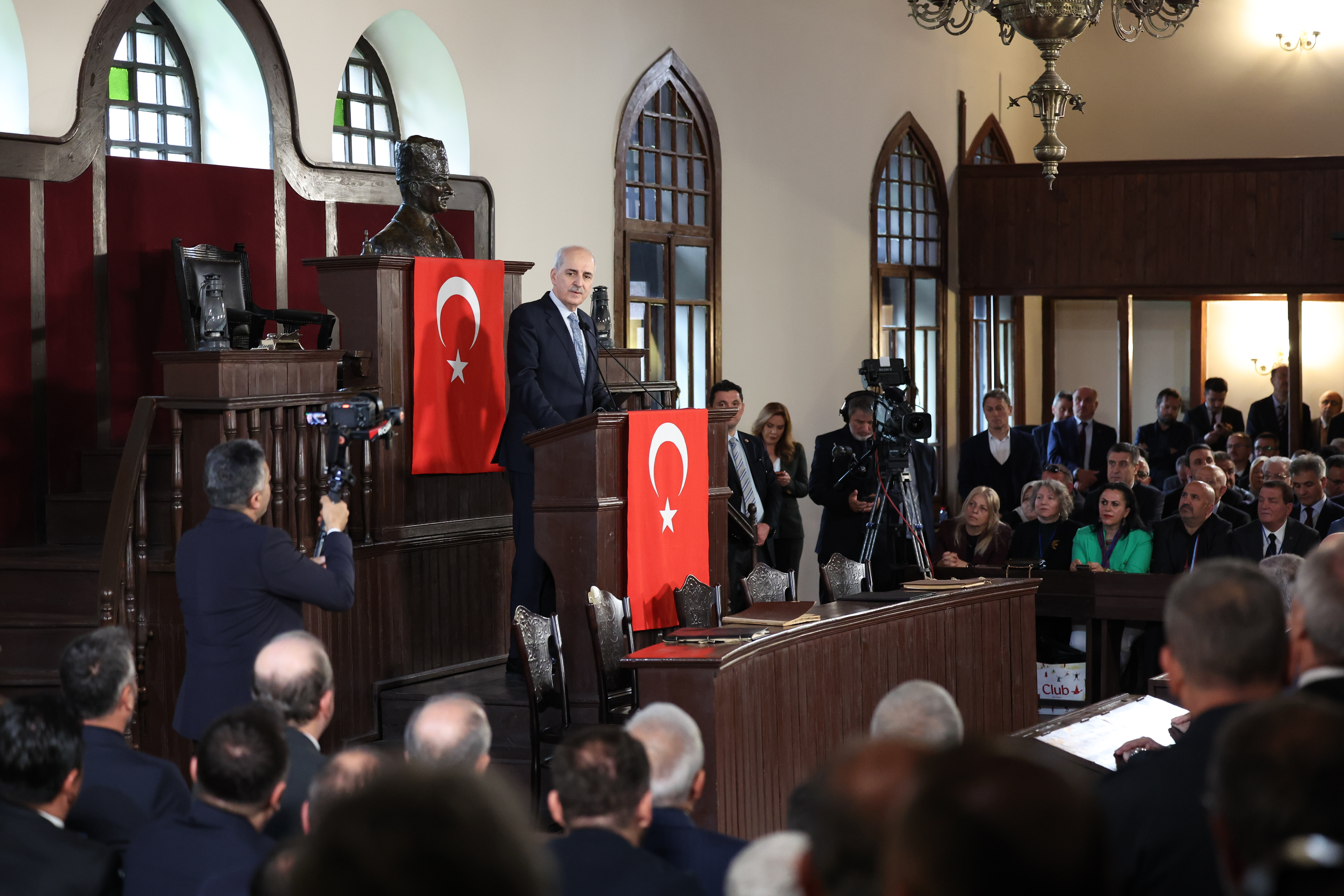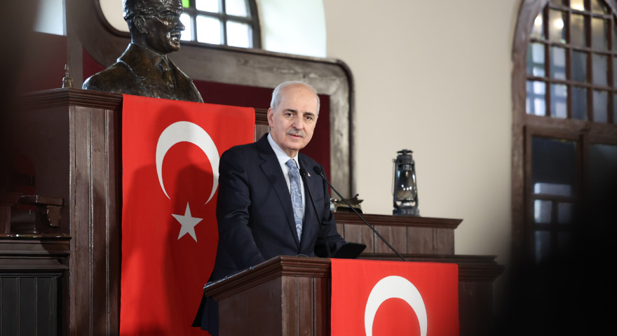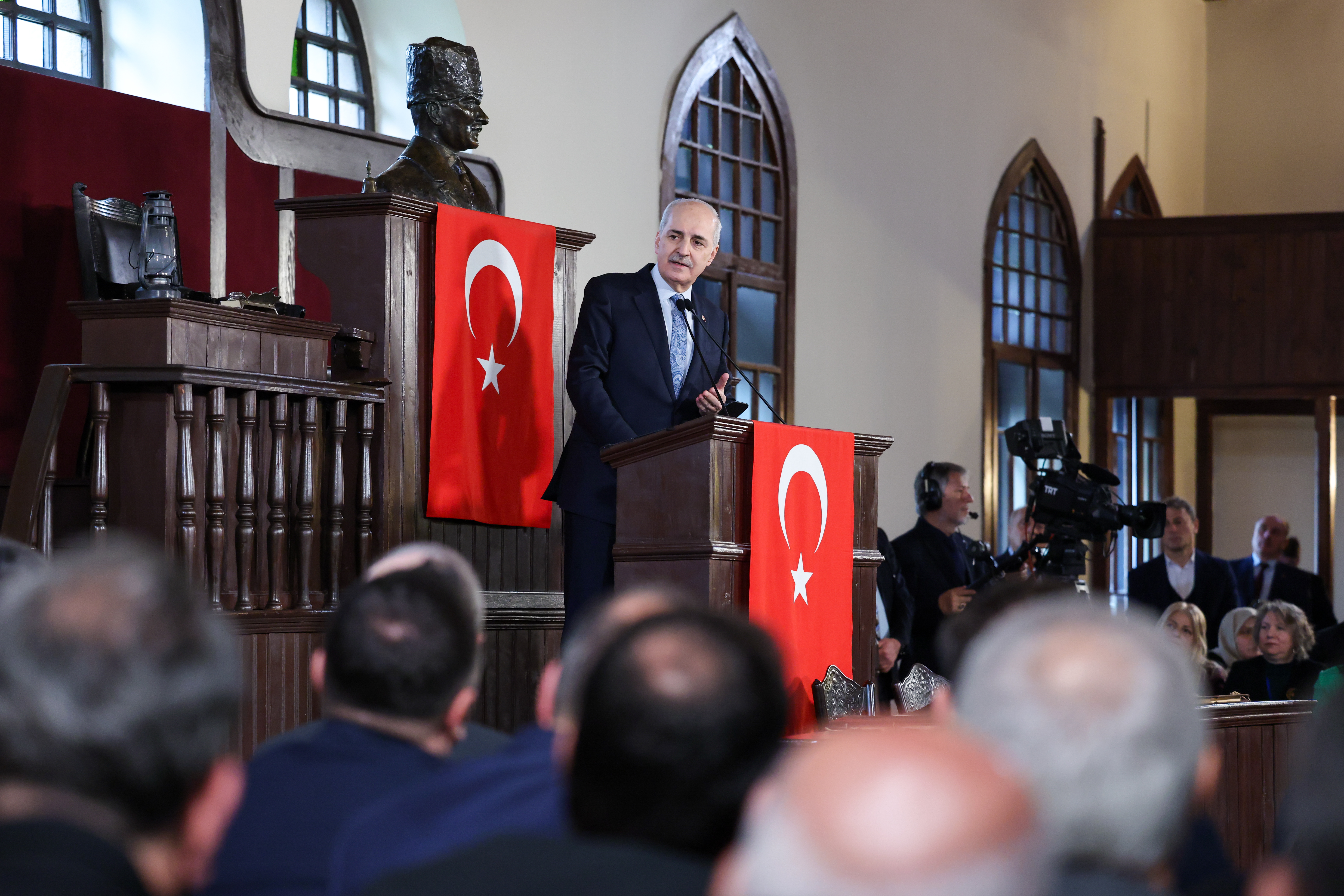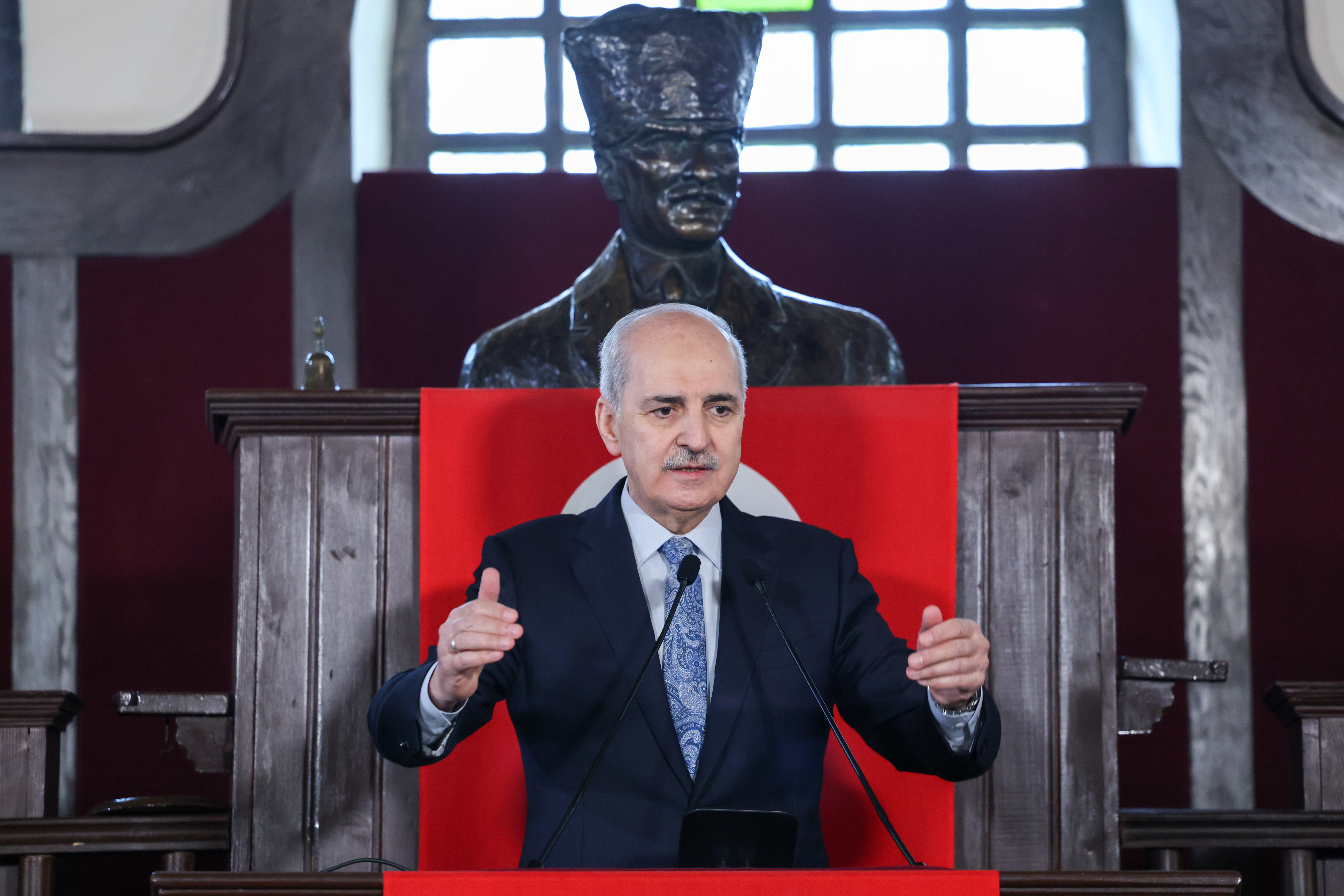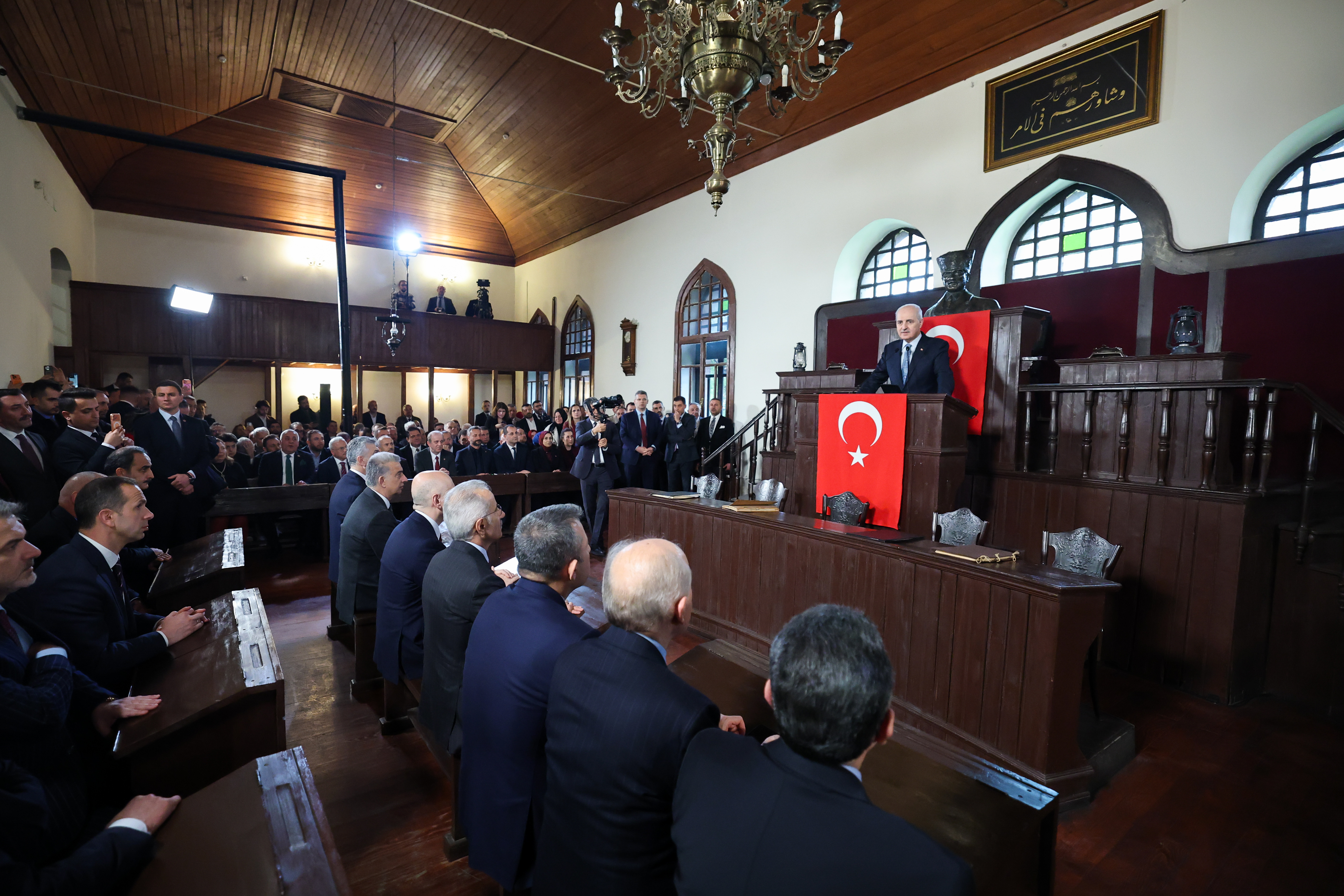 Türkiye'nin bölgesindeki türbülans, çatışma ve gerilimlere rağmen istikrar içerisinde ayakta durduğunun altını çizen Kurtulmuş, "Birinci Meclis’te sanmayın ki herkes aynı fikirdeydi, farklı fikirlerde olan nice insanlar fikirlerini müzakere ettiler ama bir hedefe yöneldiler. Hepimiz bugünün dünyasında da hele hele Orta Doğu gibi artık bir cehennem çukuruna döndürülen bu coğrafyada ayakta durmak istiyorsak bir olacağız, beraber olacağız, aynı hedefe yönelik olarak hareket edeceğiz." ifadesini kullandı.