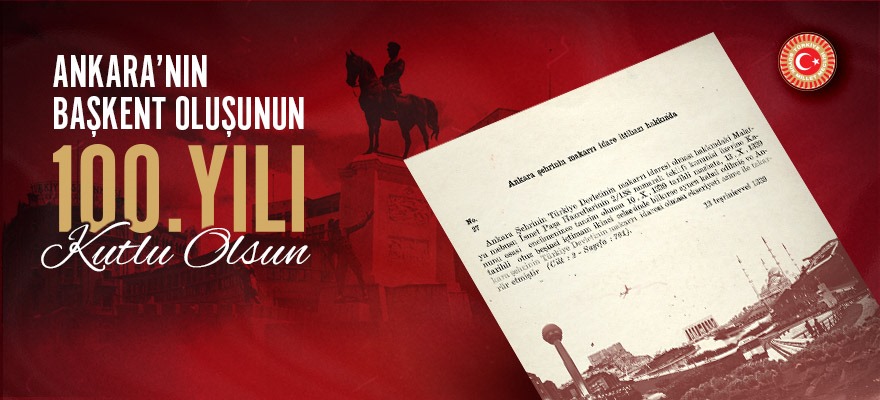 TBMM Başkanı Kurtulmuş, sosyal medya hesabından yayımladığı mesajda, "Milli Mücadele'mizin merkezi, Anadolu'nun kalbi Ankara'nın başkent oluşunun 100. yıl dönümü kutlu olsun." ifadelerine yer verdi.