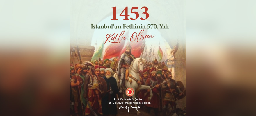 "Çağ açıp çağ kapatan, tarihin akışını değiştiren sultanlar sultanı Fatih Sultan Mehmed'in, cihanın incisi, aziz milletimizin göz bebeği olan İstanbul'u fethinin 570. yılı kutlu olsun. Seni bize yar eden, bizi sana aşık eden Cenabıhak'a sonsuz hamdü senalar olsun. Fatih Sultan Mehmed Han başta olmak üzere, fetihlerle yücelen şanlı ecdadımızı, kahramanlarımızı minnetle ve rahmetle yad ediyorum.