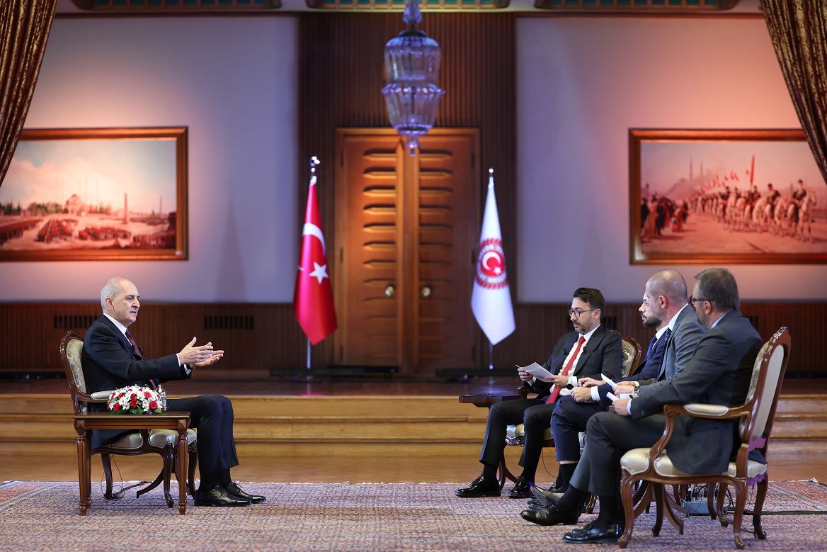 TBMM Başkanı Kurtulmuş, Meclis Tören Salonu'nda AA Editör Masası'nda gündeme ilişkin soruları yanıtladı.