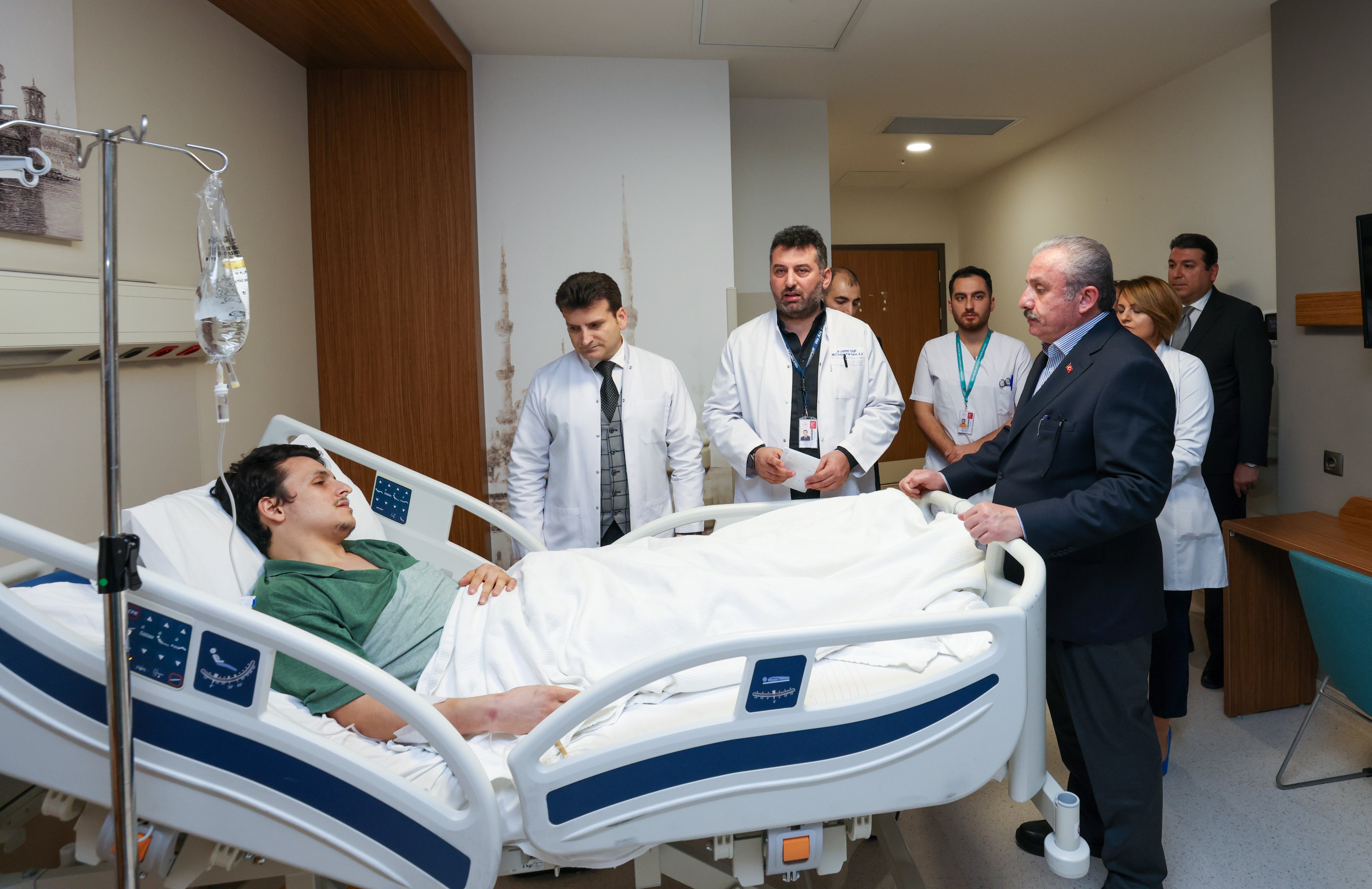 TBMM Başkanı Mustafa Şentop, Kahramanmaraş merkezli depremlerden yaralı olarak kurtulan vatandaşları, tedavi gördükleri İstanbul Başakşehir Çam ve Sakura Şehir Hastanesi'nde ziyaret ederek geçmiş olsun dileklerini iletti.