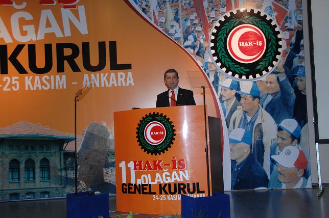 Toptan, genel kurulda yaptığı konuşmada Hak-İş'in Türk sendikal hayatına