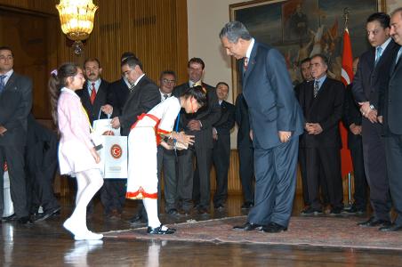 Bülent Arınç, konuşmasının ardından, 36 ülkenin çocuklarını, kendi dillerinde ''hoşgeldiniz'' diyerek karşıladı. Çocuklara Meclis'i tanıtan albüm, lokum ve cüzdan hediye eden Arınç, onların da kendisine sunduğu hediyeleri kabul etti. Geleneksel giysiler içindeki çocukları öpen ve kendileriyle ayaküstü sohbet eden Arınç, çocuklarla hatıra fotoğrafı da çektirdi.