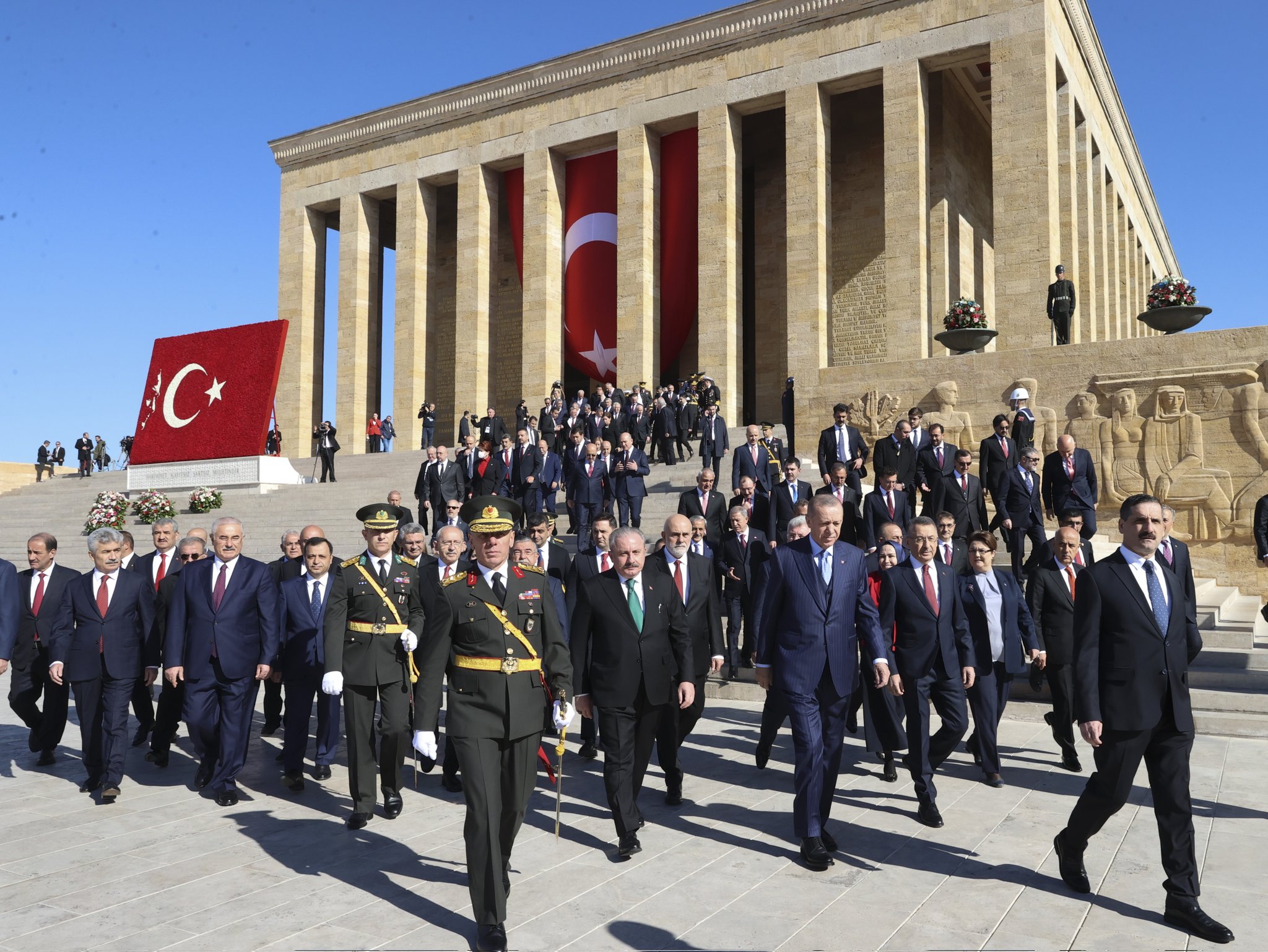 TBMM Başkanı Prof. Dr. Mustafa Şentop, Cumhurbaşkanı Recep Tayyip Erdoğan başkanlığındaki devlet erkanı ile Cumhuriyet'in ilanının 99'uncu yıl dönümü dolayısıyla Anıtkabir'i ziyaret etti.