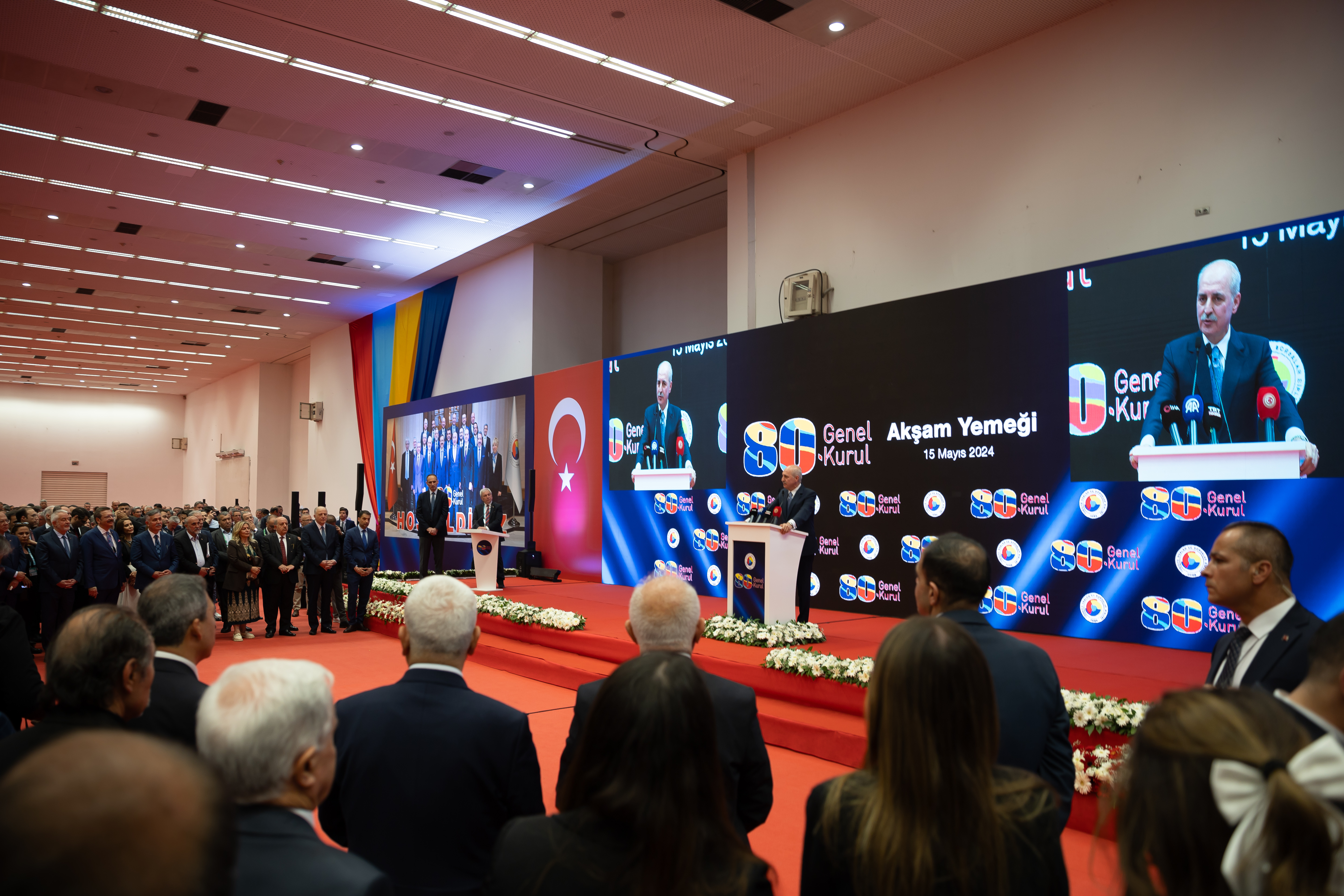 TBMM Başkanı Kurtulmuş, Türkiye Odalar ve Borsalar Birliğinin (TOBB) 80. Genel Kurulu kapsamında ATO Congresium’da düzenlenen resepsiyonda yaptığı konuşmada, TOBB’un yeni yönetim kuruluna seçilenlere başarı diledi. Kurtulmuş, 2 milyona yakın iş adamının, tüccar ve sanayicimin oluşturduğu bu büyük ailenin, aslında geleneksel ahilik kültürünün bugünkü yansıması olduğunu belirtti.