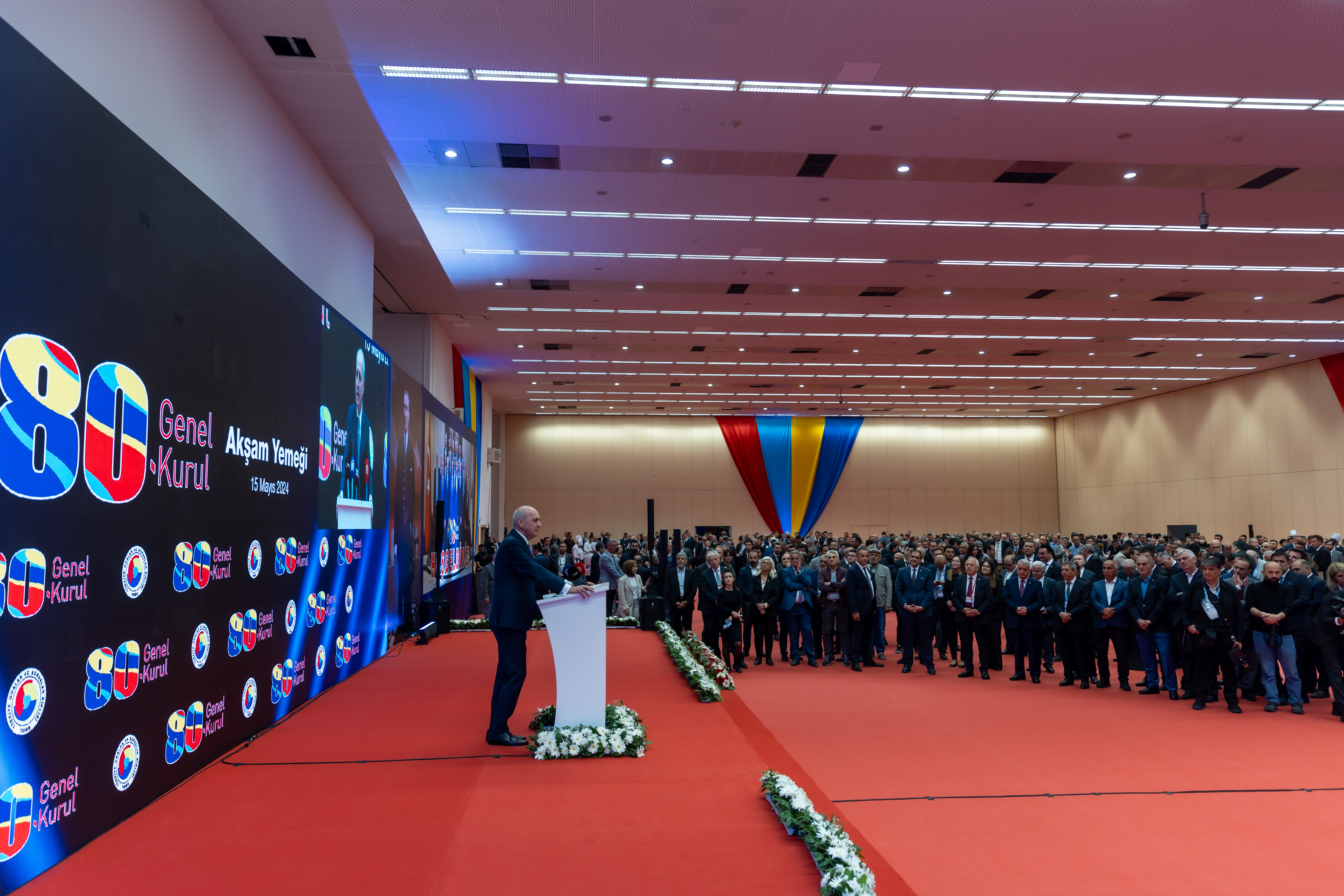 “Sizlerden her türlü katkıyı bekliyoruz. Her türlü platformda da yeni anayasa tekliflerinizin tartışmaya açılmasını sağlayacağınızı ümit ediyoruz. Çünkü iş dünyasının beklentilerinin, taleplerinin anayasa çalışmalarında gündeme gelmemesi düşünülemez. Bu vesileyle anayasa çalışmalarında bu salonda bir de 81 ilimizin hepsi temsil ediliyor. Hem TOBB’un niteliği gereği hem de aynı zamanda Türkiye’nin farklı yerlerindeki insanların beklentilerini, taleplerini alabilen bir kuruluş olarak onları da anayasa çalışmalarına aksettirmenizi ümit ediyorum. Bu vesileyle 80. Genel Kurulun bir kere daha hayırlı uğurlu olmasını temenni ediyorum.