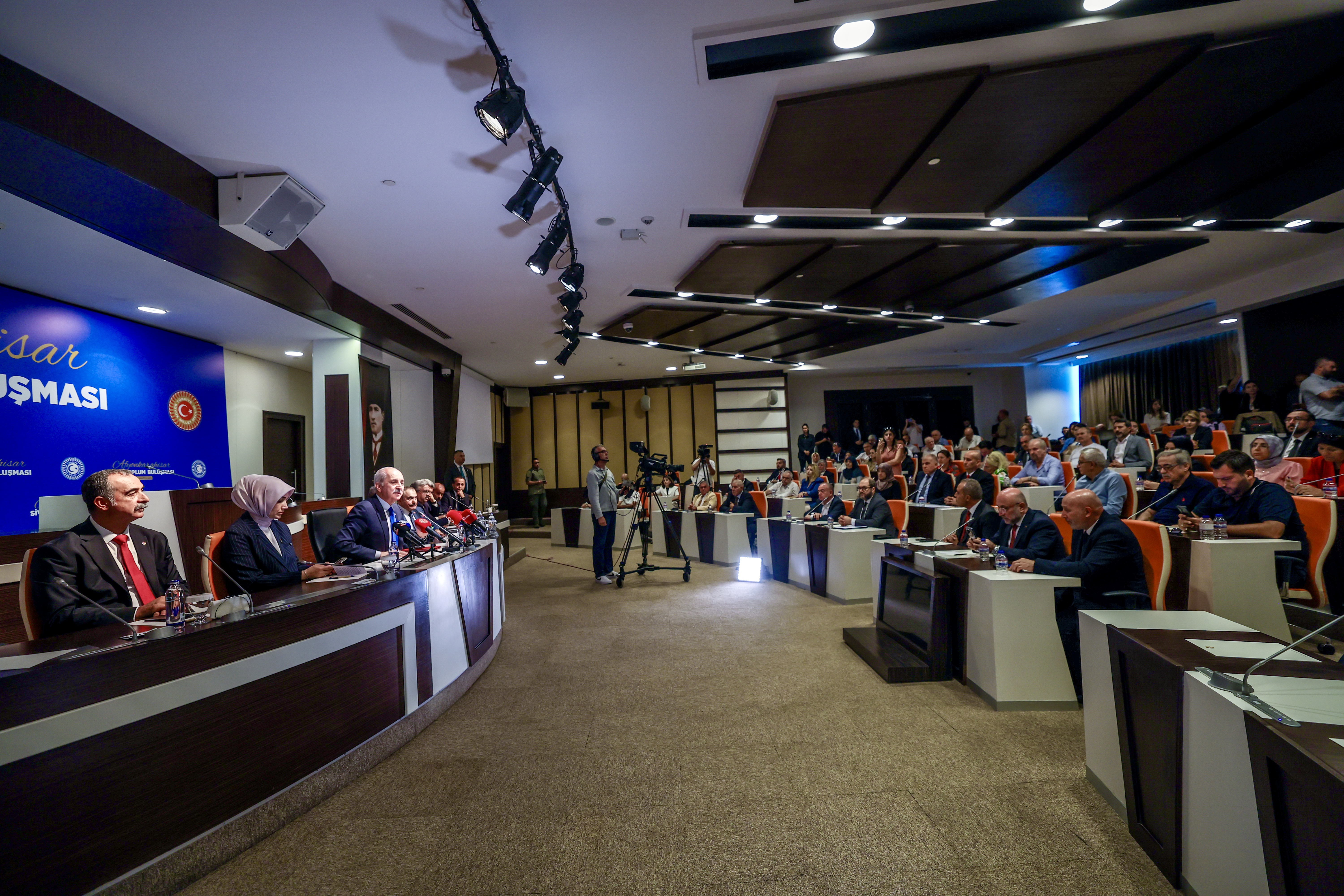 "Bu çerçevede Türkiye'nin içinde bulunduğu bölgenin amiral gemisi olmasından rahatsızlık duyan bazı emperyalist güçlerin ve onların bölgedeki bazı yansımalarının da süreçten rahatsızlık duyacağını gayet iyi biliyoruz. Onun için burada milletimizin bütün fertlerinin, bütün toplumsal kesimlerin dinleneceği bir süreci yaşıyoruz. Bunun sonunda da ortak mana bir noktada ümit ederim ki bir çerçeveyi ortaya koymak ve bunu da Meclis'in Genel Kurulu'na teklif olarak sunmak mümkün olur. Görüşmelerimize öncelikle hayatlarını, canlarını ortaya koyan şehit ailelerimiz, şehitlerimizin aileleri, gazilerimiz ve gazilerimizin ailelerini dinleyerek başladık. Gerçekten oldukça duygulu bir toplantı yaşandı. Orada gazilerimizden birisi, bir çatışmada kaybettiği gözünün yerine takılan yapay gözünü eline alarak, konuşmasını yaptı. Diğer gözünün korneası da çatışmada yanında şehit düşen bir arkadaşından alınan korneayla gerçekleştirilmiş olan bir göz nakliydi. Çok duygulu bir oturum oldu.