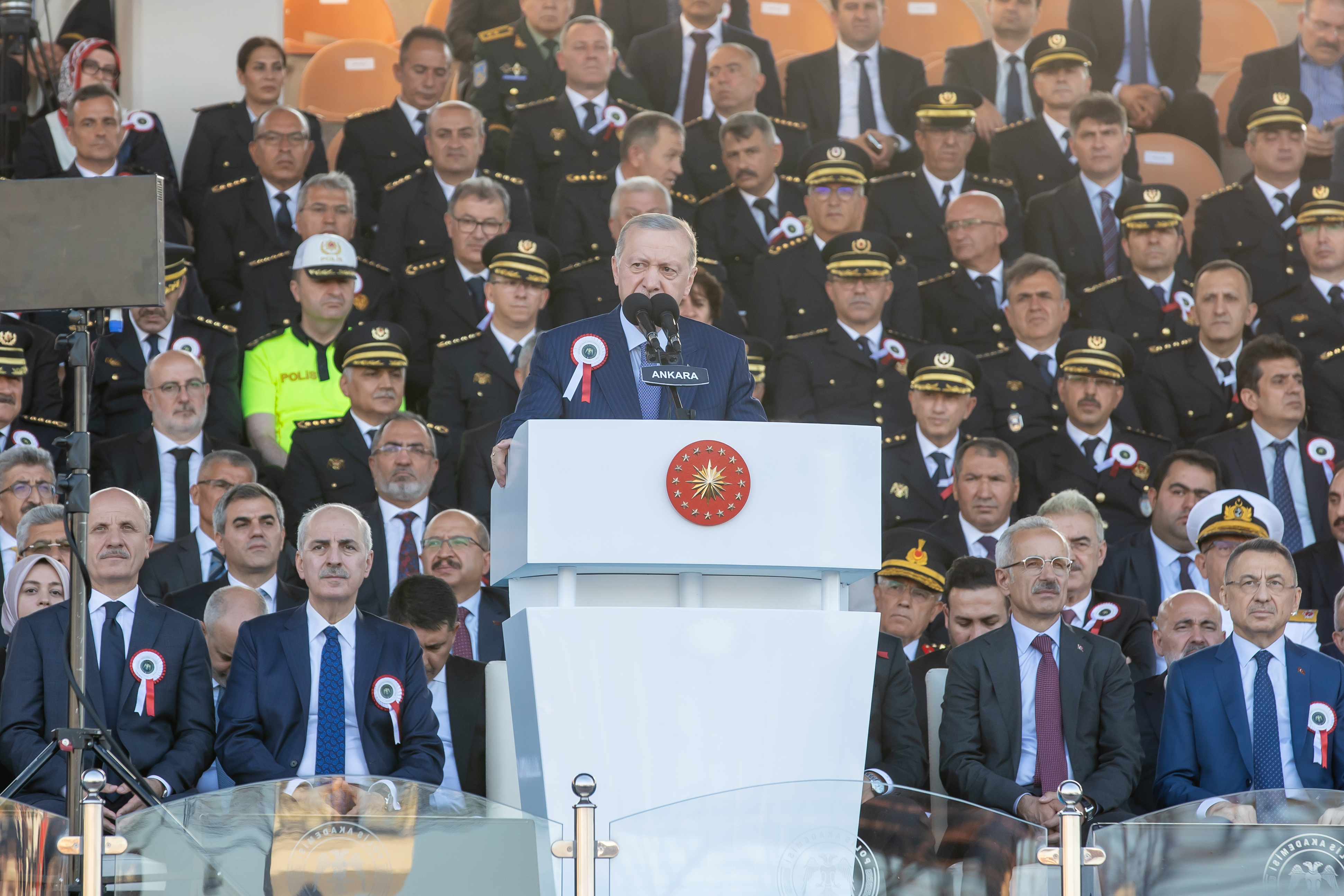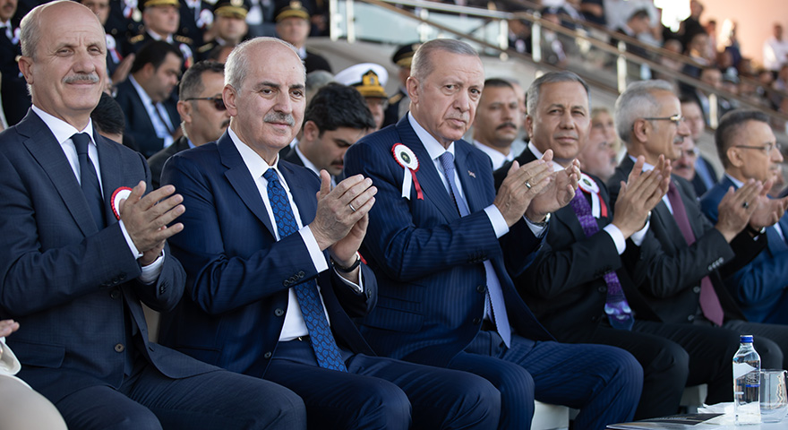 Törene, Cumhurbaşkanı Erdoğan ve TBMM Başkanı Kurtulmuş’un yanı sıra, İçişleri Bakanı Ali Yerlikaya, Ulaştırma ve Altyapı Bakanı Abdulkadir Uraloğlu, Emniyet Genel Müdürü Erol Ayyıldız, Polis Akademisi Başkanı Prof. Dr. Yılmaz Çolak, Diyanet İşleri Başkanı Ali Erbaş ile mezun öğrencilerin aileleri de katıldı.