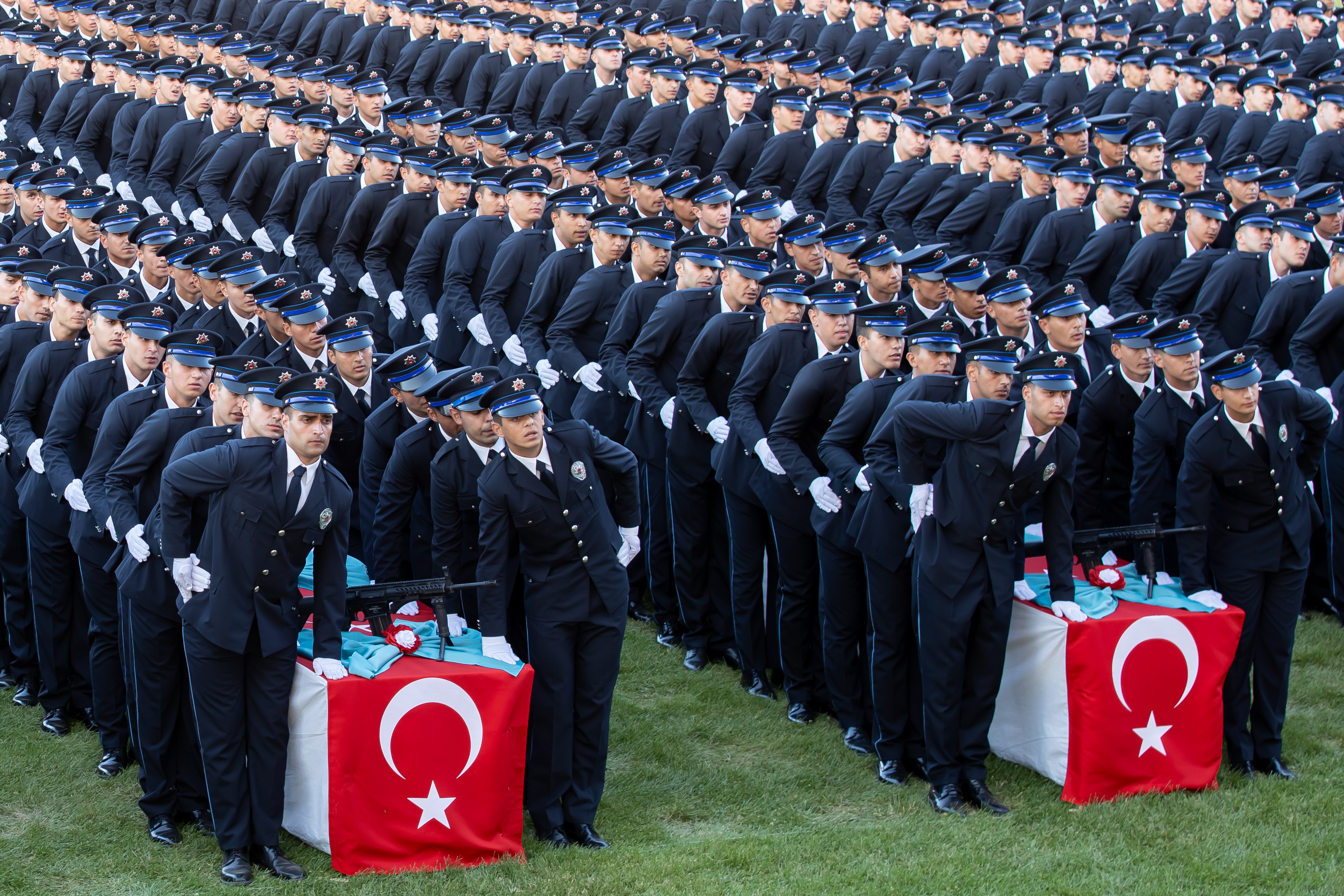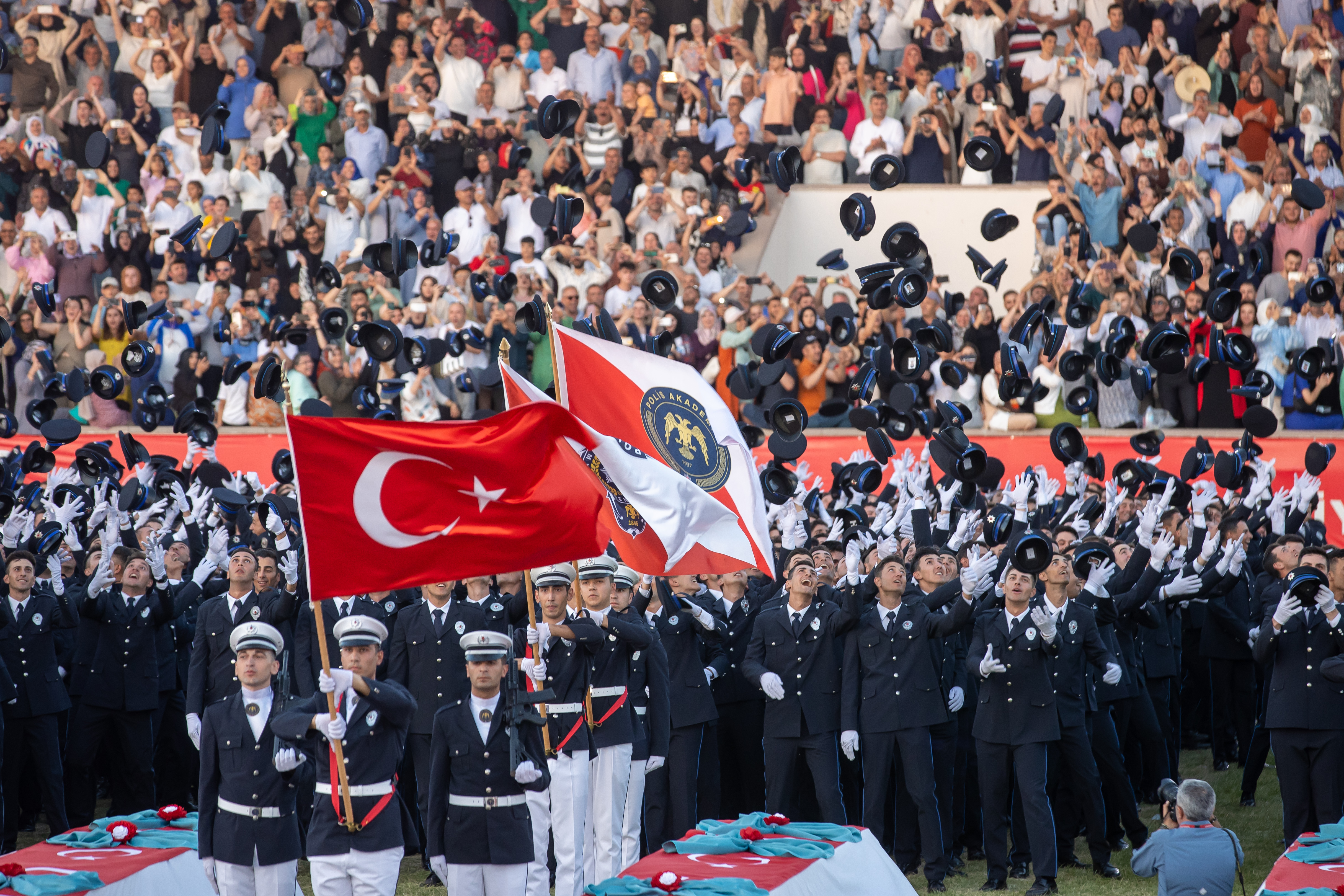 Polisler daha sonra keplerini havaya atarak, mezuniyet sevincini yaşadı.