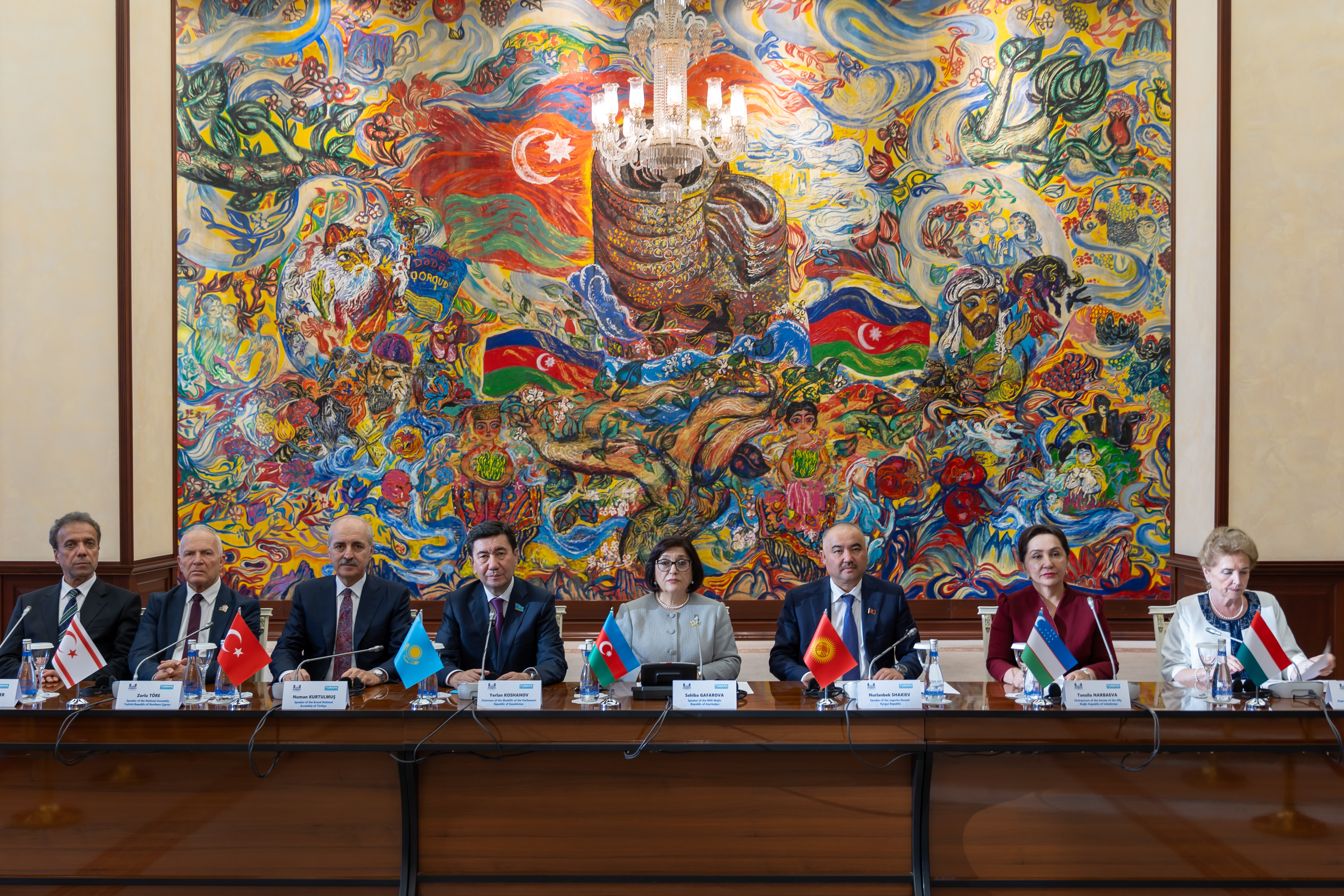 TBMM Başkanı Kurtulmuş, “Türk Dünyası için Yeşil Ufuklar: Yeşil Gündemin Gerçekleştirilmesinde Parlamentoların Rolü” temasıyla Azerbaycan Milli Meclisindeki Türk Devletleri Parlamenter Asamblesi (TÜRKPA) 13’üncü Genel Kurulu’nun ardından Azerbaycan Milli Meclisi Başkanı Sahibe Gafarova, Kazakistan Meclisi Başkanı Yerlan Koşanov, Özbekistan Ali Meclisi Senato Başkanı Tanzila Narbayeva, Kırgızistan Meclis Başkanı Nurlanbek Şakiyev, Kuzey Kıbrıs Türk Cumhuriyeti Cumhuriyet Meclisi Başkanı Zorlu Töre, Macaristan Parlamentosu Başkan Yardımcısı Marta Matrai, TÜRKPA Genel Sekreteri Mehmet Süreyya Er’in katılımıyla düzenlenen ortak basın toplantısında konuştu.