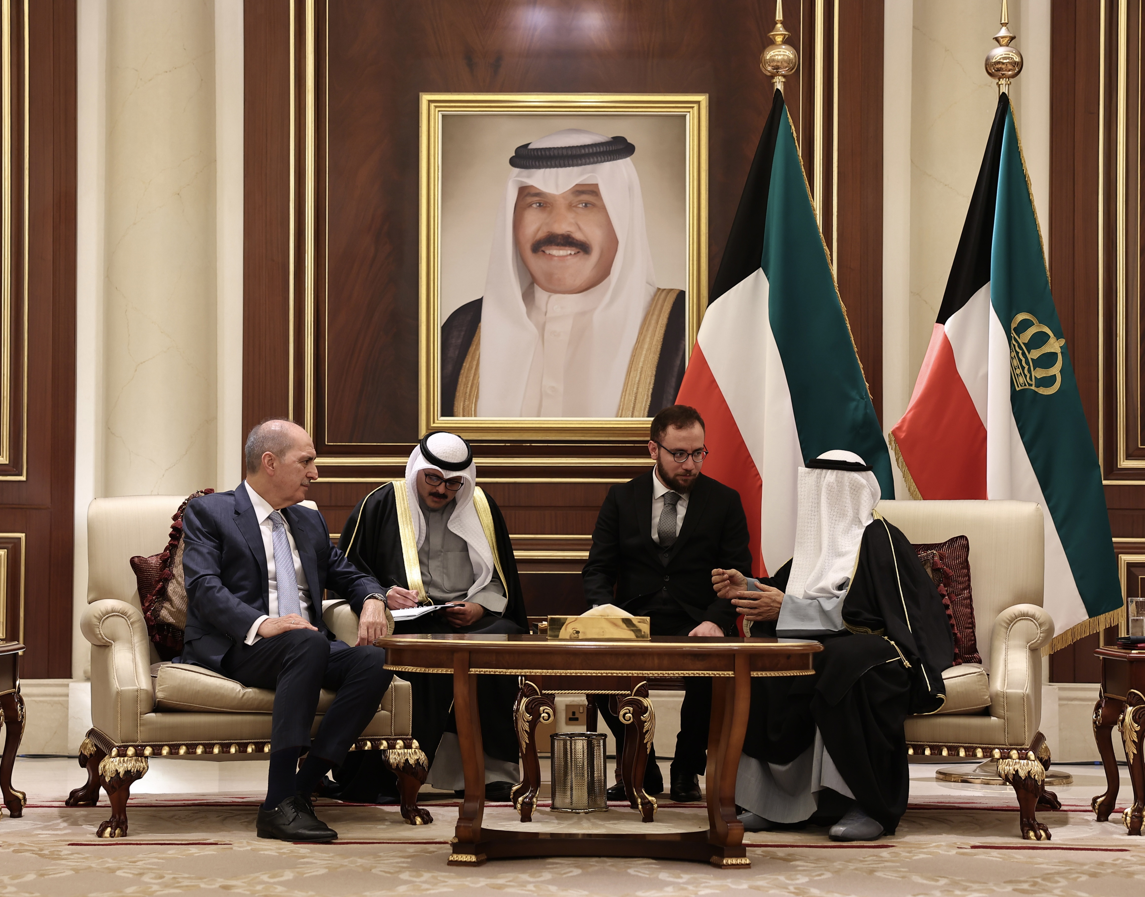 Kuveyt'in yeni emiri Şeyh Meşal ile Kuveyt Uluslararası Havalimanı'nda bir araya gelen Kurtulmuş, Şeyh Nevvaf'ın hayatını kaybetmesinden dolayı taziyelerini iletti.