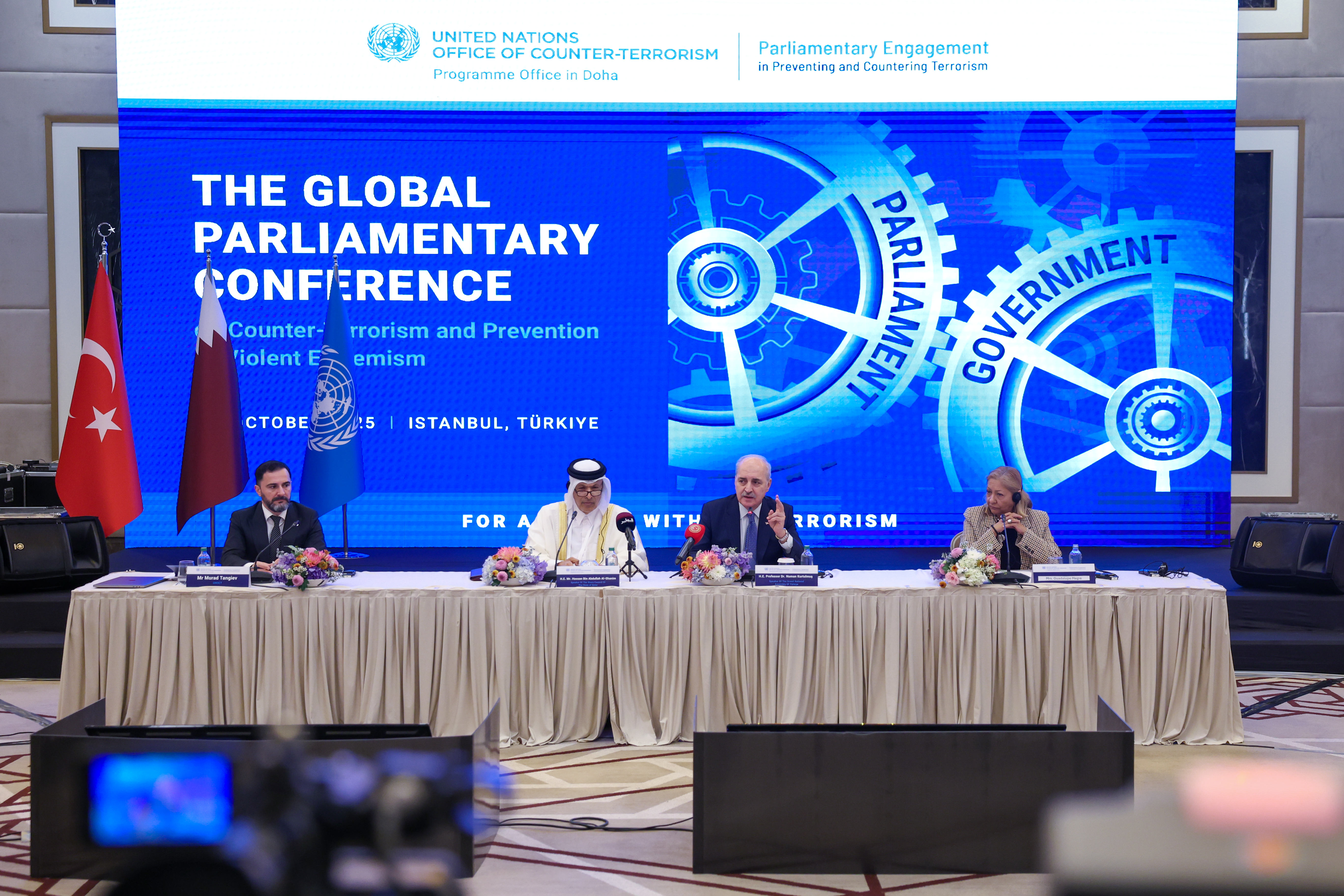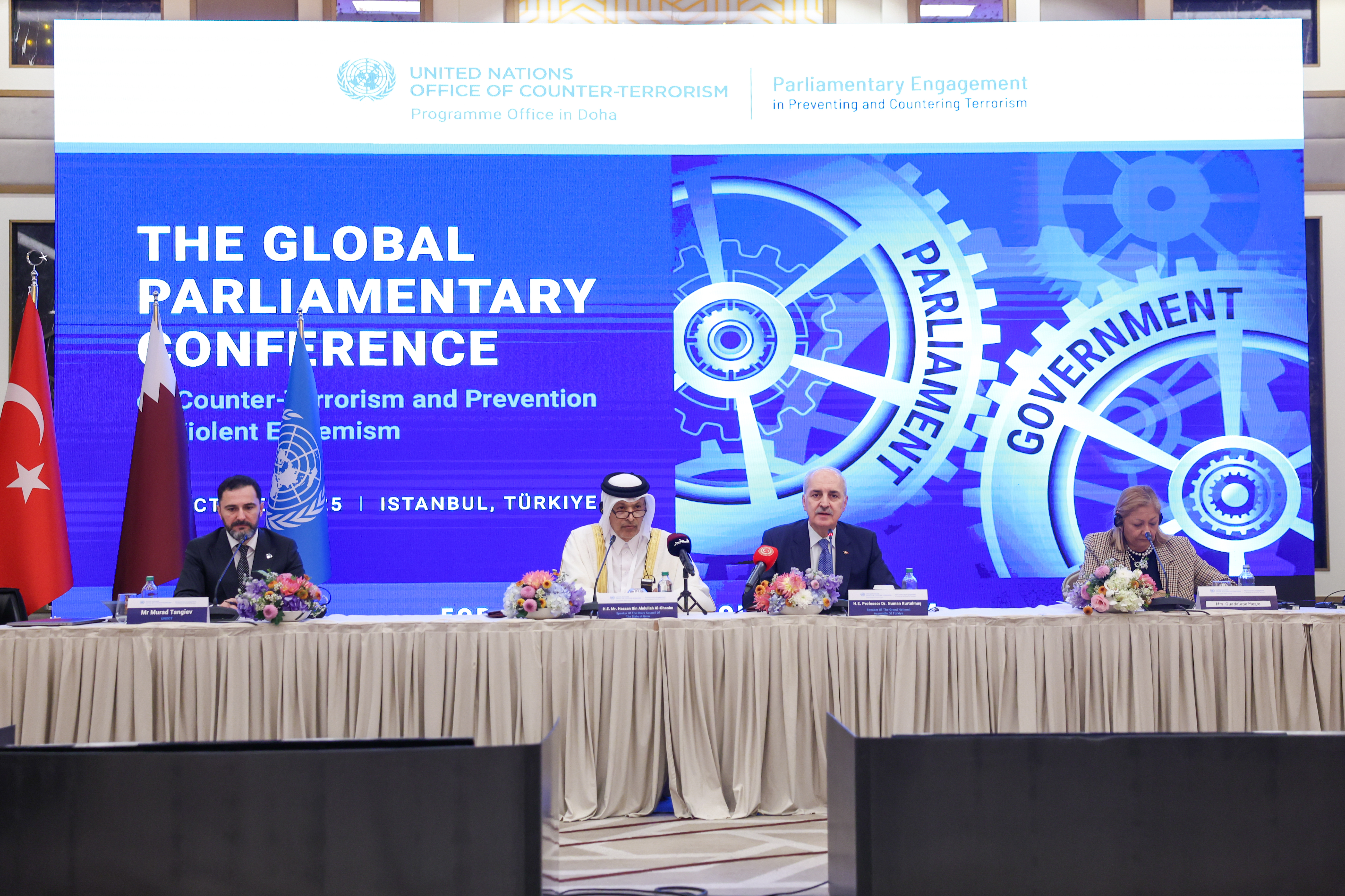 Kurtulmuş, Birleşmiş Milletler (BM) Terörizmle Mücadele Ofisi (UNOCT) tarafından Hilton Bakırköy Otel’de düzenlenen “Terörle Mücadele ve Şiddete Varan Aşırılığın Önlenmesi Üzerine Küresel Parlamenter Konferansı”nda yaptığı konuşmada, dünyanın en önemli meselelerinden birisi olan teröre karşı küresel bir mücadele oluşturmak noktasında bugün gerçekleştirilen toplantının faydalı olması ve iyi sonuçlar çıkarması temennisini dile getirdi.