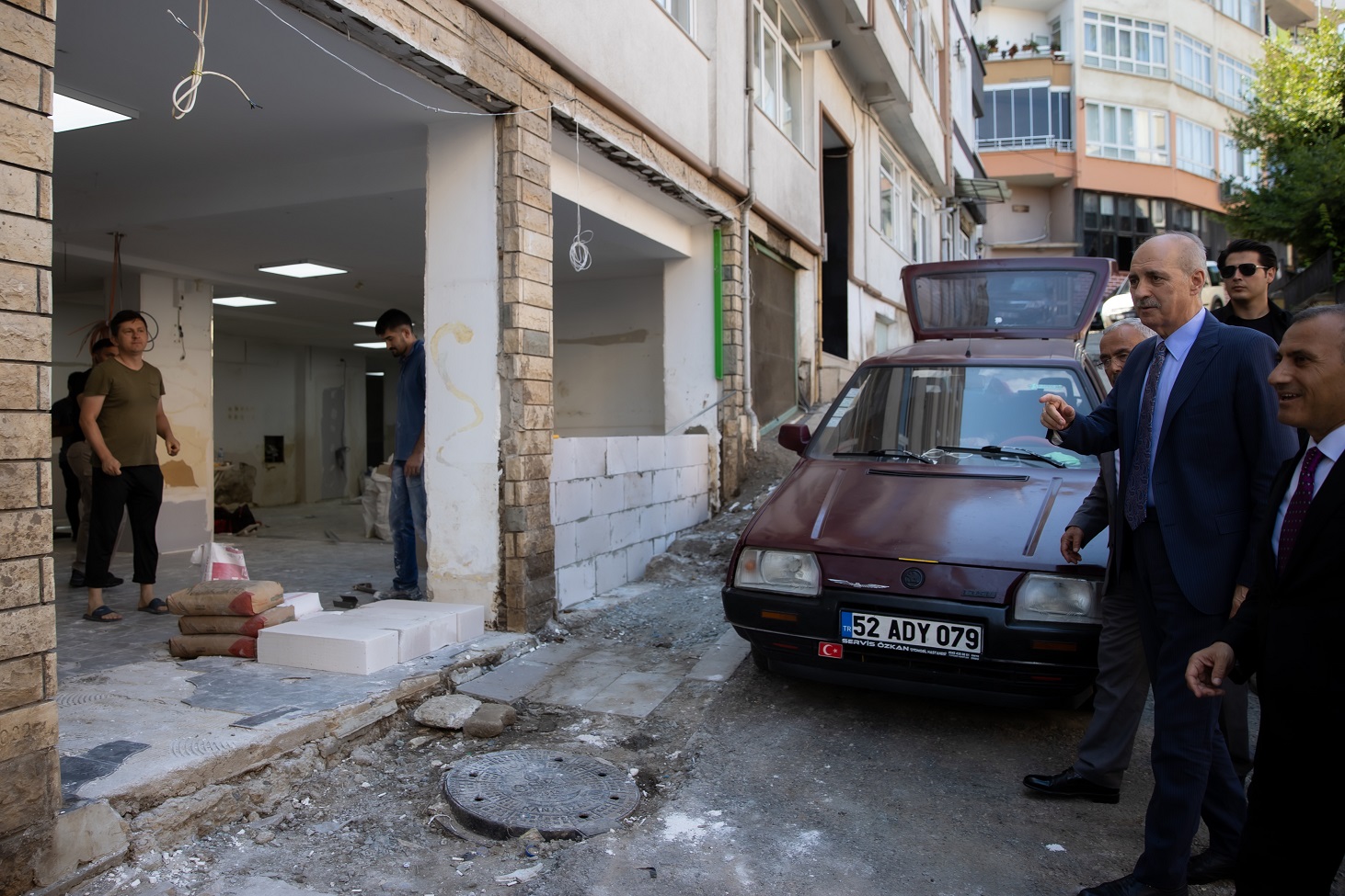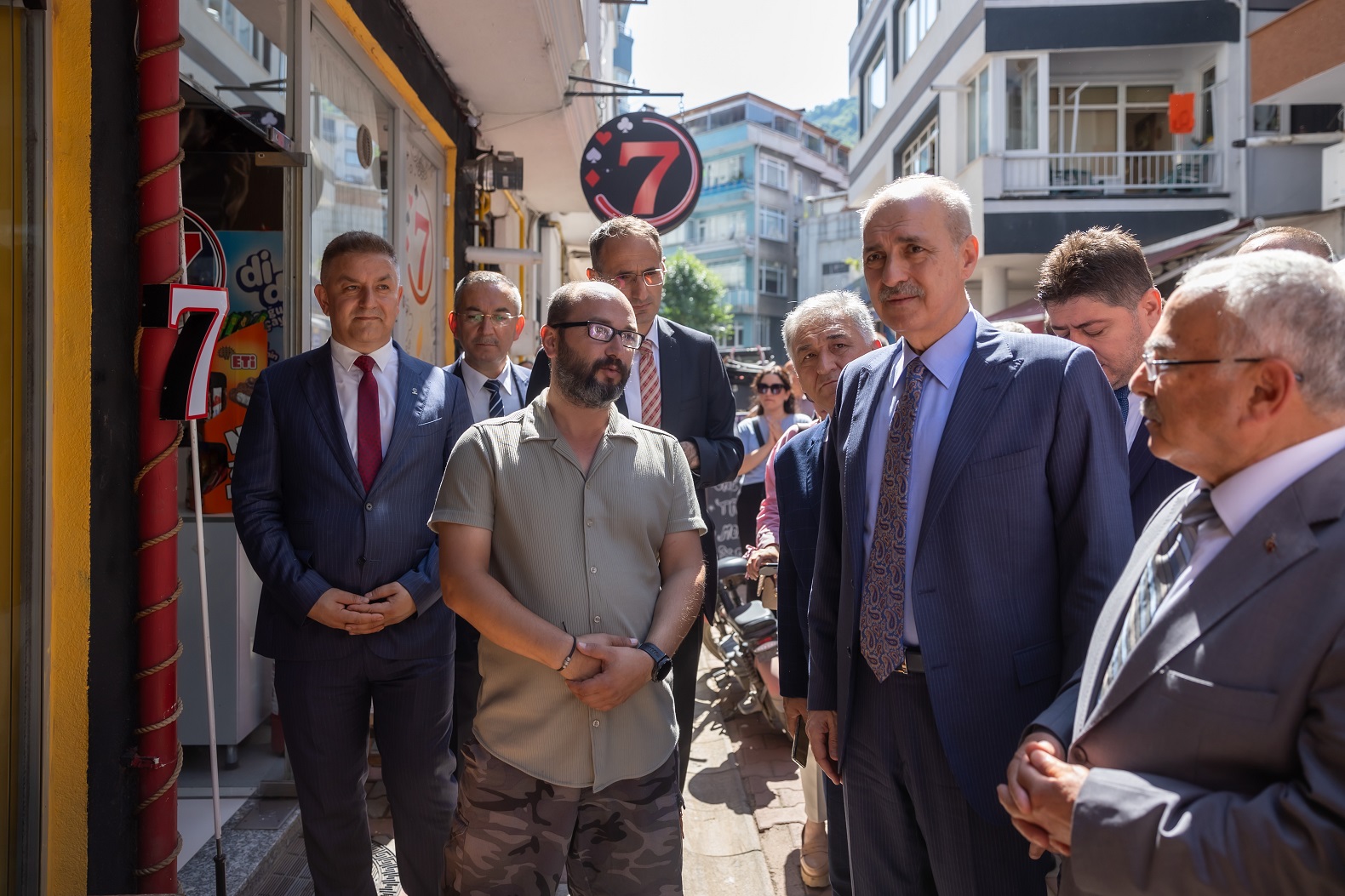 TBMM Başkanı Kurtulmuş, Ordu’da sel afeti nedeniyle zarar gören çarşı esnafını da ziyaret ederek geçmiş olsun dileklerini iletti.